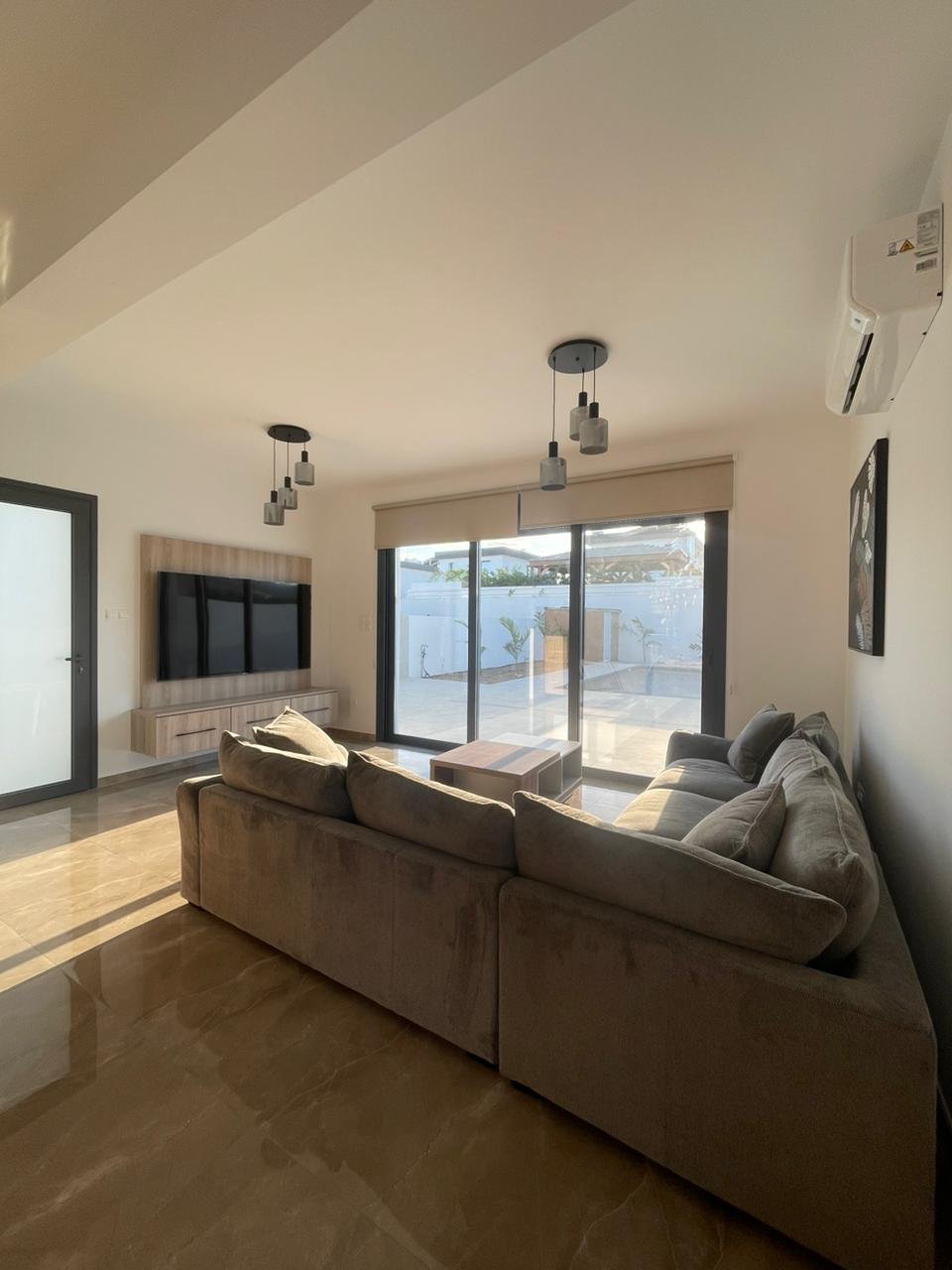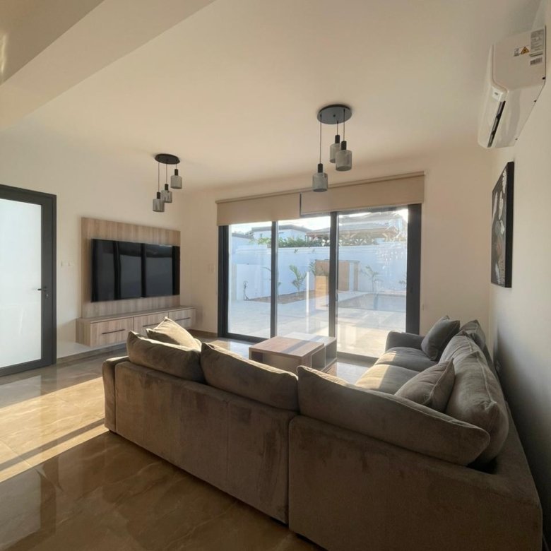 This brand-new 3-bedroom house with a private swimming pool is situated in the prestigious area of Pareklisia, Limassol. The property spans two floors and features three bedrooms, an open-plan living and kitchen area, and three bathrooms. Outside, a designed garden and a stylish swimming pool, all showcasing a modern and elegant design.
