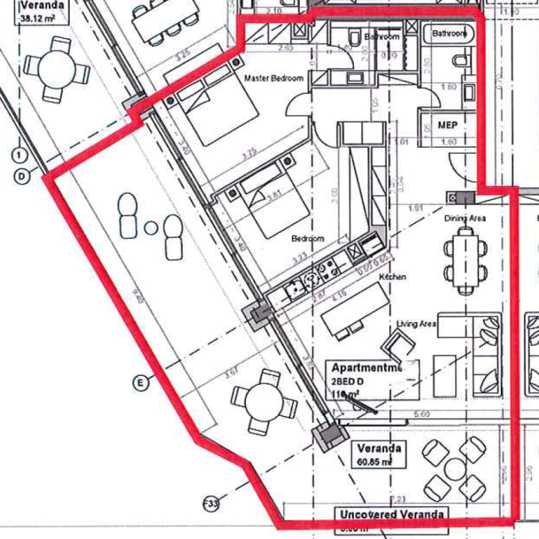 Uncovered veranda: 30m2