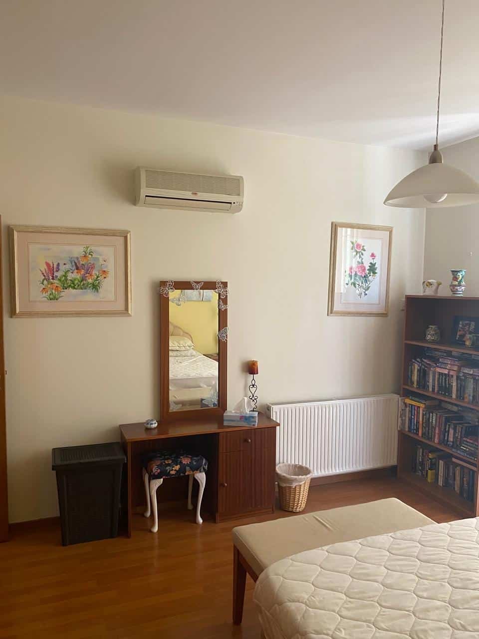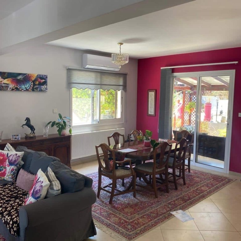 This charming 3-bedroom house is located in the quiet residential village of Pyrgos, Limassol. The ground floor features a spacious open-plan living room and kitchen, a guest W.C., a small storage room under the stairs, double glazing, solar panels for hot water, A/C in all rooms, central heating, and two balconies.