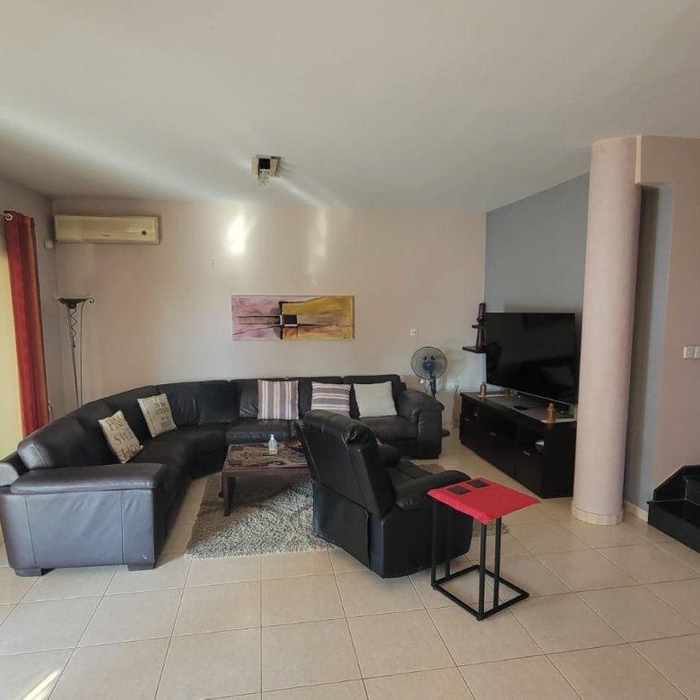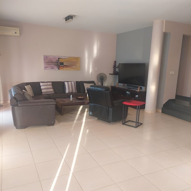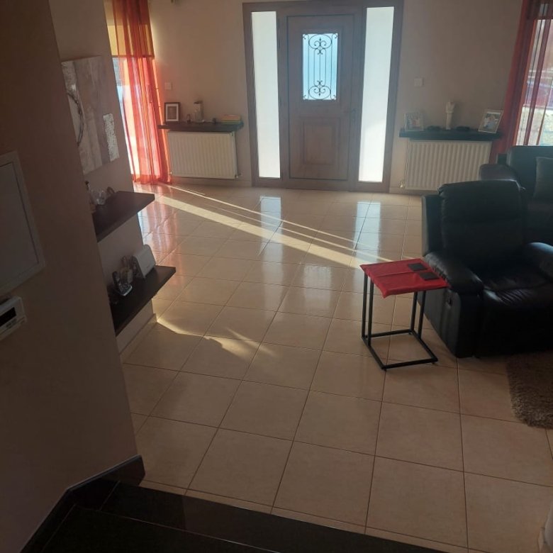 The villa is ideally located just a 5-minute drive from the seafront road, very convenient. Inside, the ground floor boasts an open-plan kitchen with adjoining laundry/utility room, a bright living and dining area, and a guest toilet. Upstairs, you’ll find three bedrooms and a family bathroom. The master bedroom benefits from an en-suite bathroom and a private veranda. With its excellent layout and spacious grounds, this villa holds great potential to be transformed into a stylish, modern home.