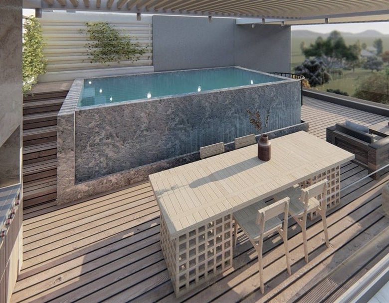 The villa offers owners the delight of star-filled night skies and sea view in the daytime.