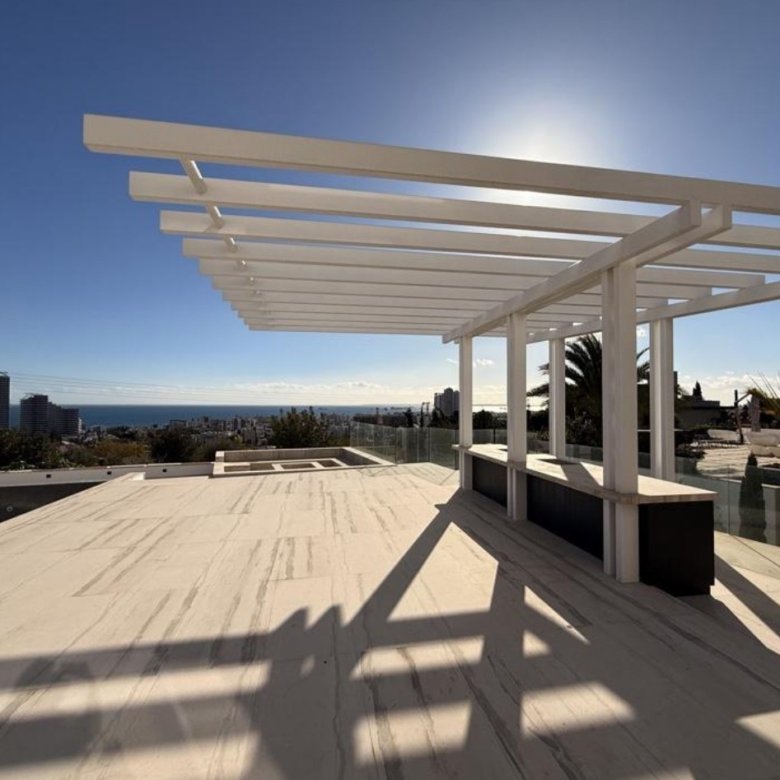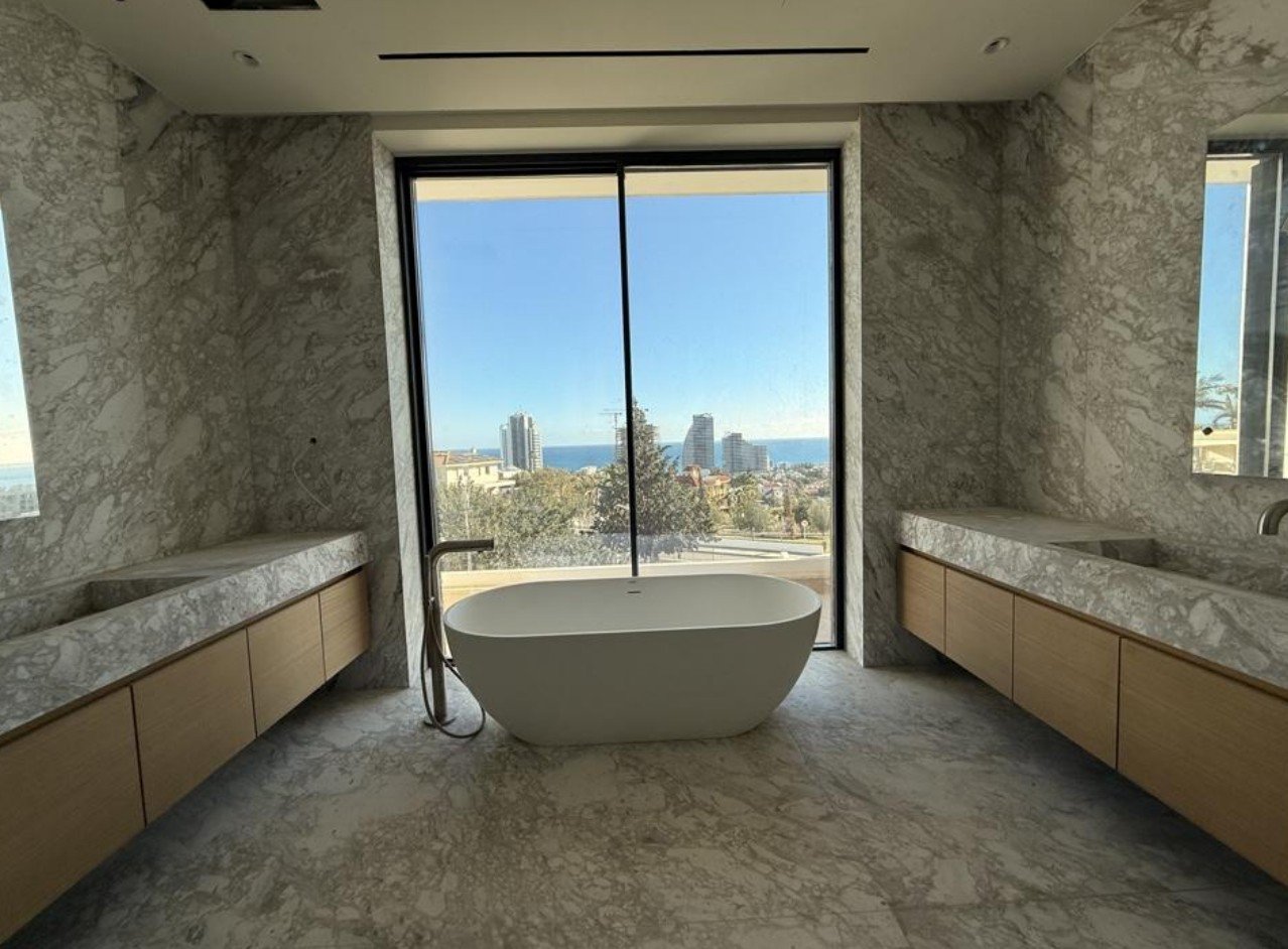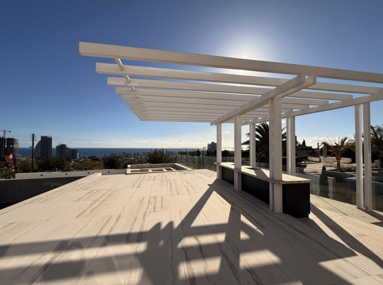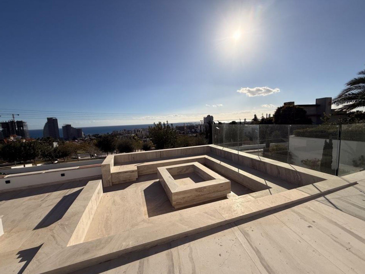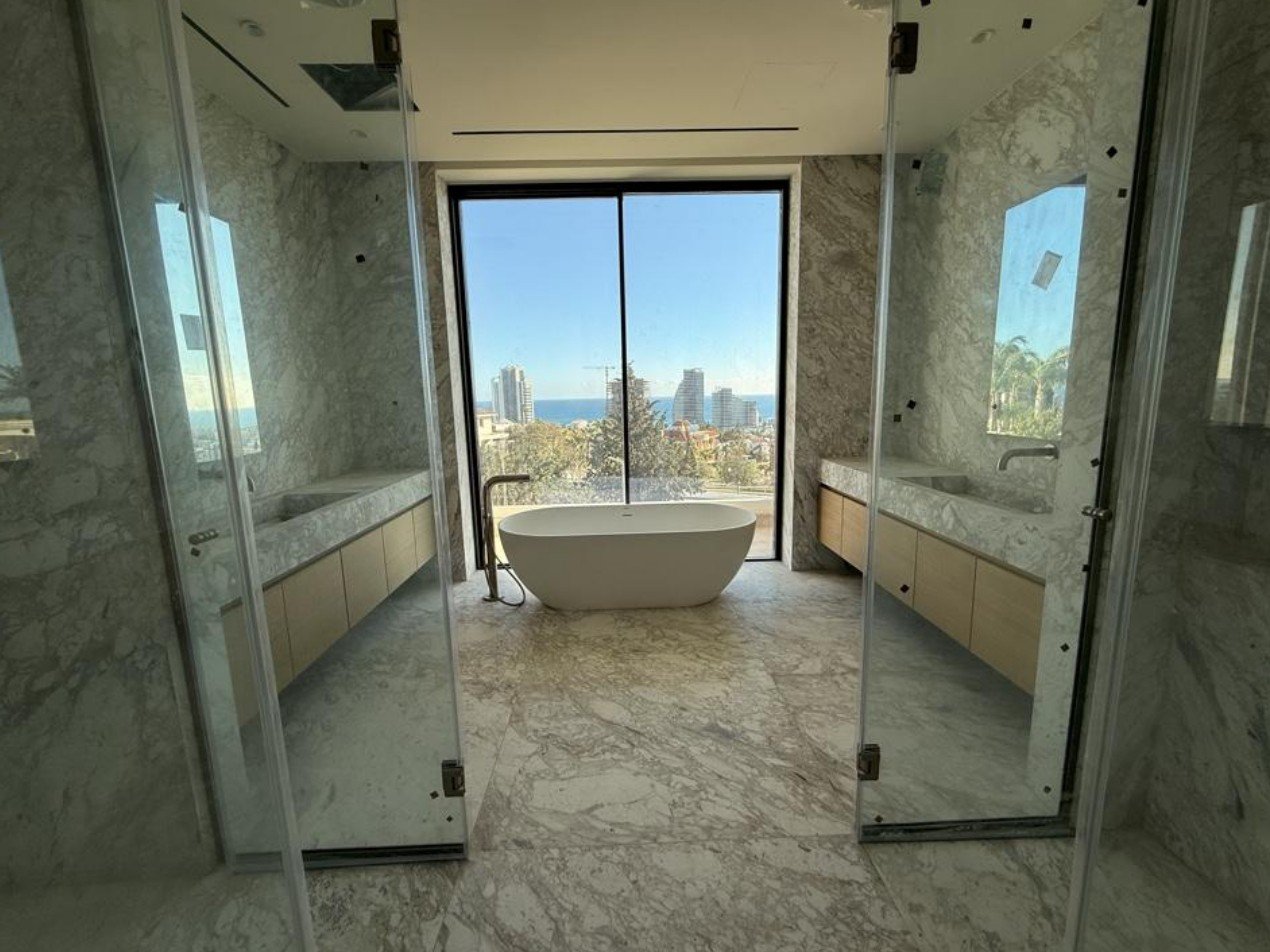 Designed for luxury living, it offers indoor and outdoor swimming pools, a spa area, a fully equipped chef’s kitchen, a bar/play area, home cinema, roof garden, elevator, laundry, storage and plant rooms, kava area, underfloor and solar heating, marble or granite flooring, granite kitchen tops, and high-end fittings throughout, combining elegance, comfort, and functionality for the ultimate sophisticated lifestyle by the sea.