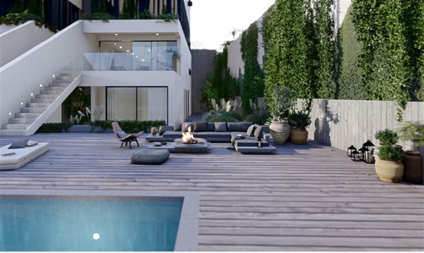 The Maisonettes: 3 Bedroom duplexes with private gardens and optional pools -147 m2 internal areas.