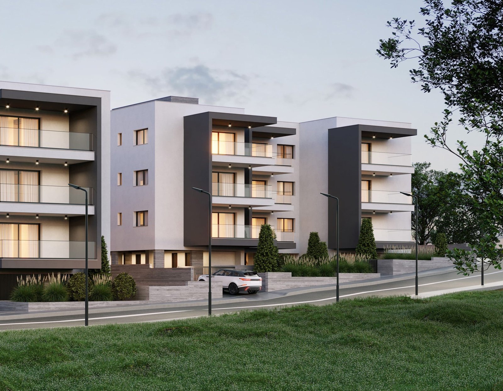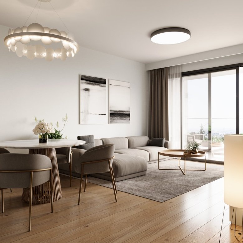 The development features a stunning collection of one, two, and three-bedroom apartments, each designed with open-plan living spaces. Large balconies allow residents to enjoy the serene surroundings.