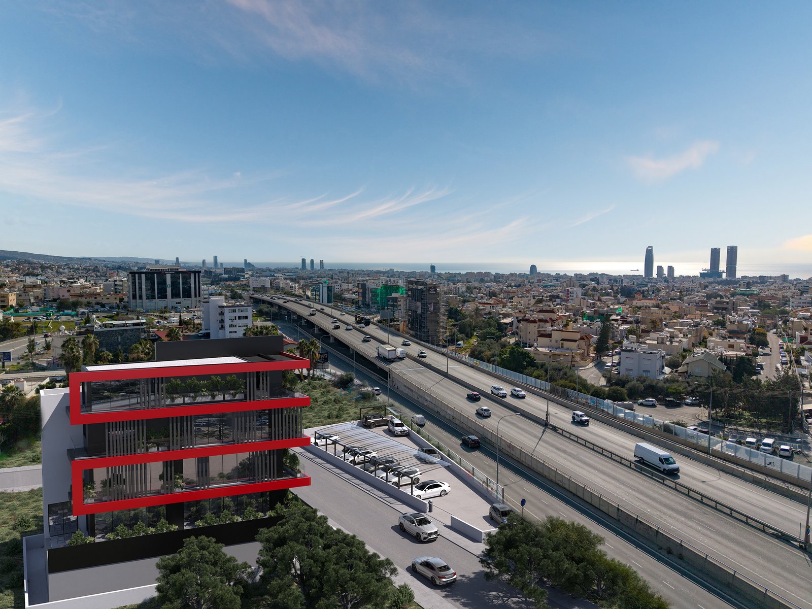 This shop/office space is located on the ground floor of a contemporary building in Limassol. The property enjoys a prime position just 100m from the Mesa Geitonia roundabout, directly facing the main Limassol–Nicosia road. It offers excellent visibility from the highway as well as very easy access.
