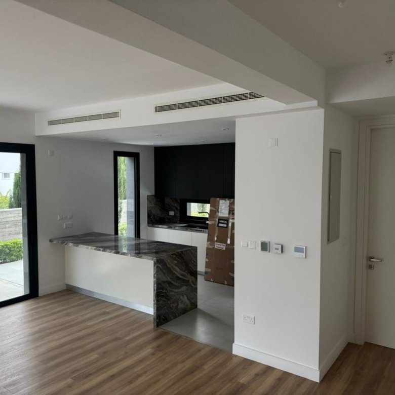 This brand-new 3-bedroom house in Agios Athanasios, Limassol, is in a peaceful area close to all amenities. Featuring high-quality finishes and unique details, it includes 3 bedrooms, 2 bathrooms, an open-plan living and dining area, European porcelain sanitary ware, and a video phone system.