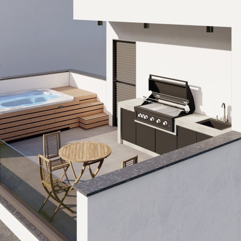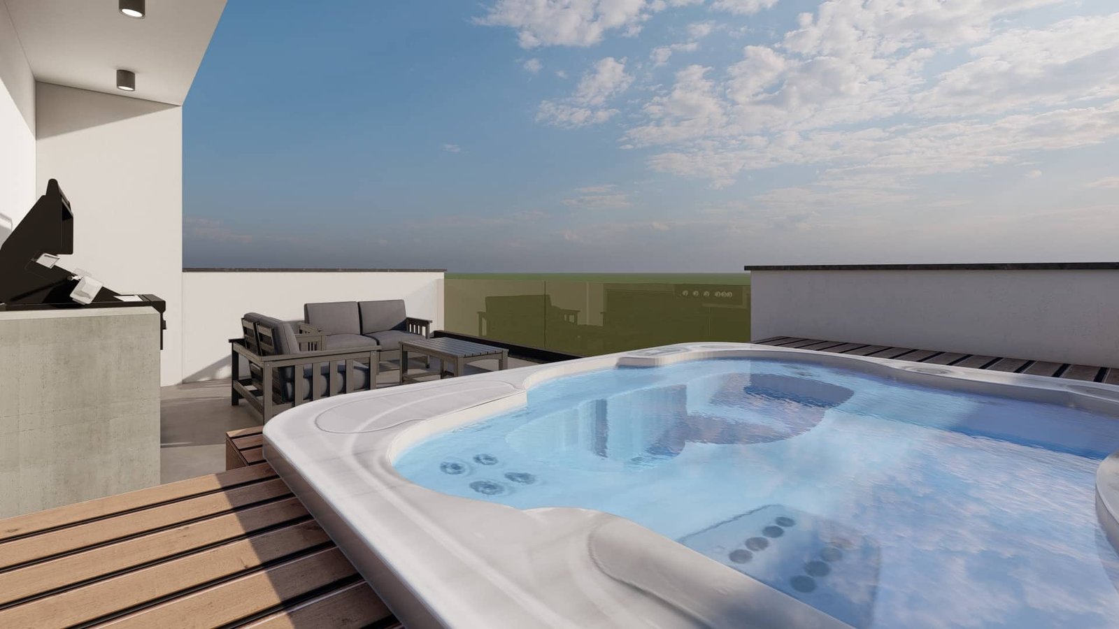 Each townhouse is designed with sophistication and comfort in mind, featuring cutting-edge materials that ensure durability and luxury. A standout feature of these homes is the private roof garden, complete with a jacuzzi, offering a perfect retreat for relaxation. The integration of high-tech materials underscores the commitment to quality and modern living.