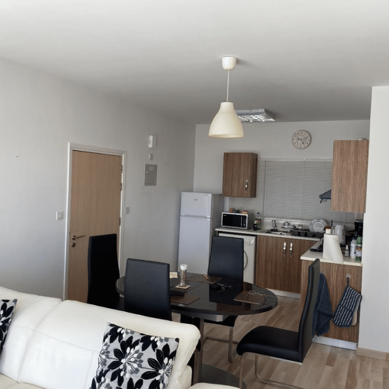 This cozy two bedroom apartment is located in a quiet residential area in Agios Tychonas, Limassol, close to all amenities. It is consist of 2 bedrooms, an open plan kitchen and a spacious veranda with sea views.