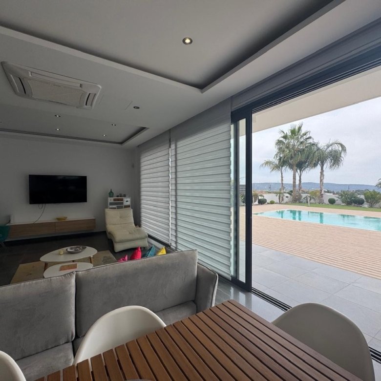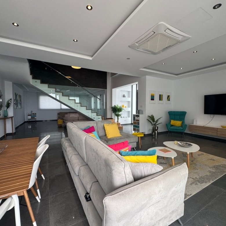 This modern 4-bedroom villa is located in Moni, Limassol, within a secure gated complex in a peaceful area known for its beautiful scenery and tranquil village atmosphere. The villa is fully furnished with high-quality finishes. Its open-plan layout features a spacious living and dining area, seamlessly connected to a sleek, fully equipped kitchen.