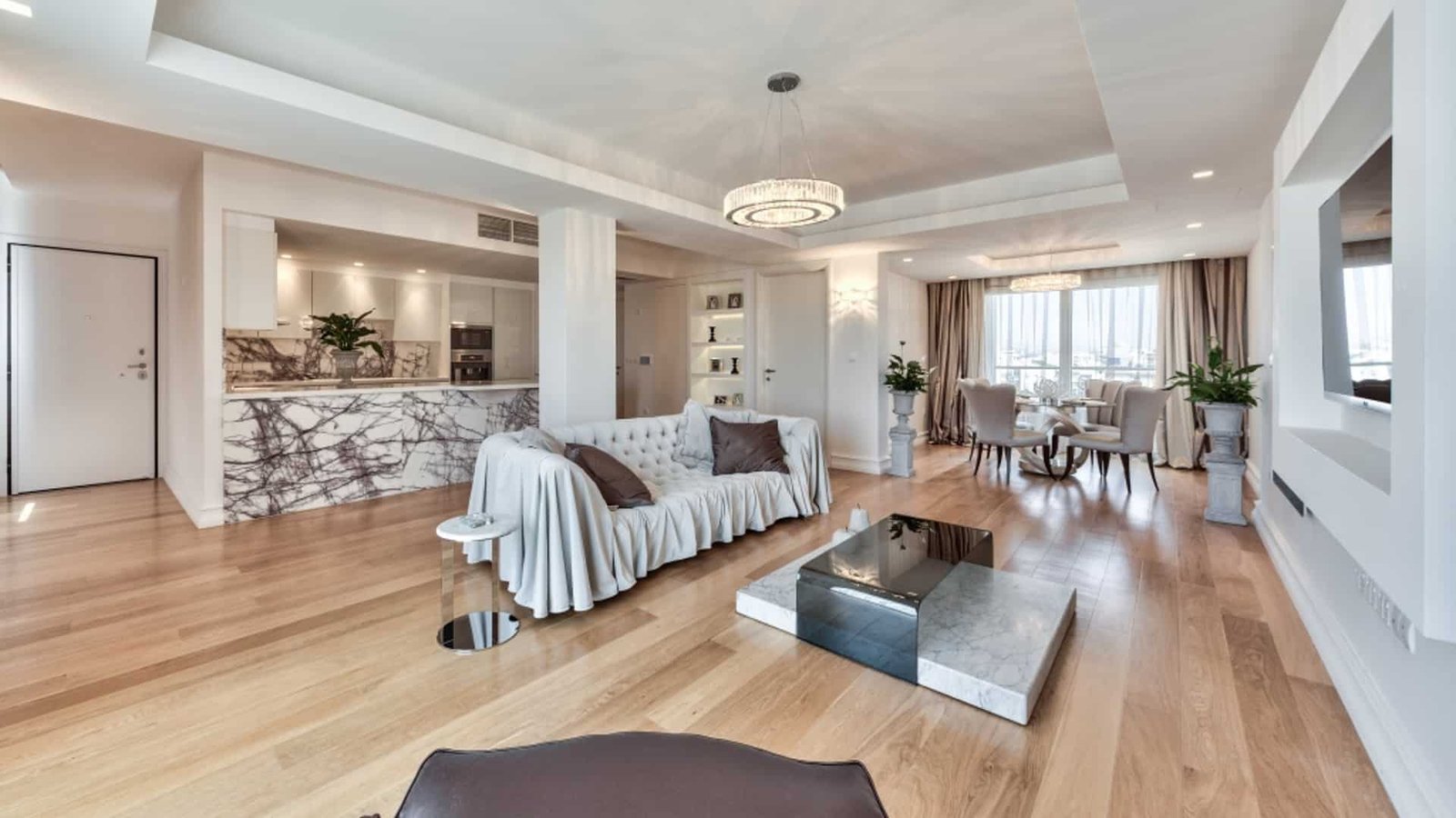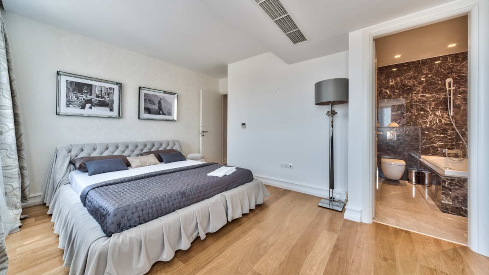 Positioned on the 6th floor, the apartment offer stunning sea and mountain views. It includes 2 bedrooms, 2 bathrooms (one with a bathtub, one with a shower).