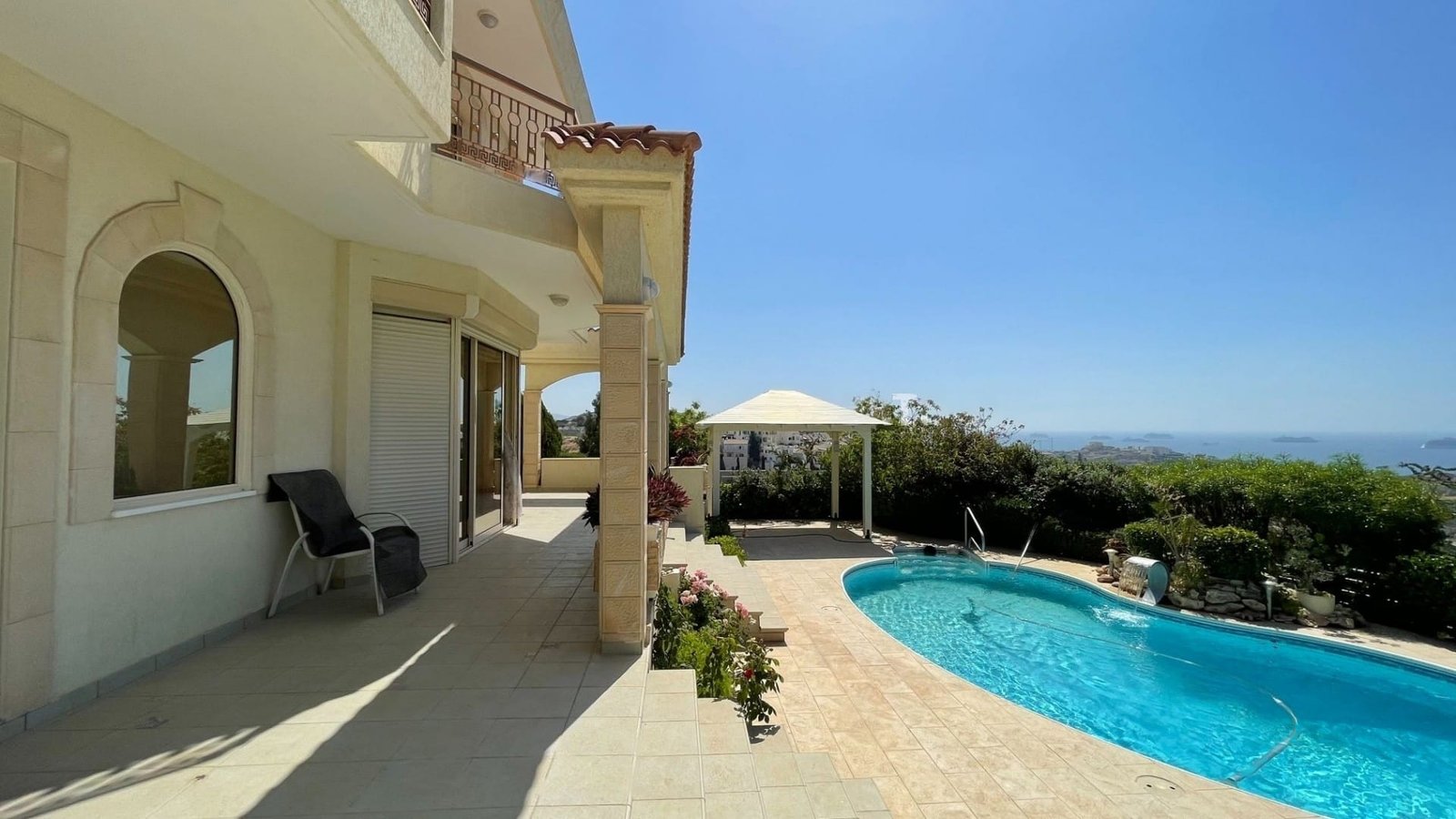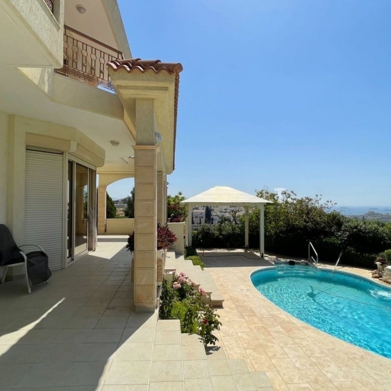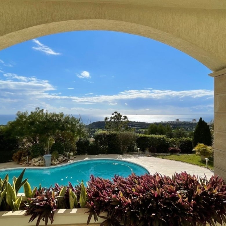 The 5-bedroom villa with spectacular views of the mountains, and sea, and the city is located in the most prestigious area of Limassol, on one of the hills of Agios Tychonas.