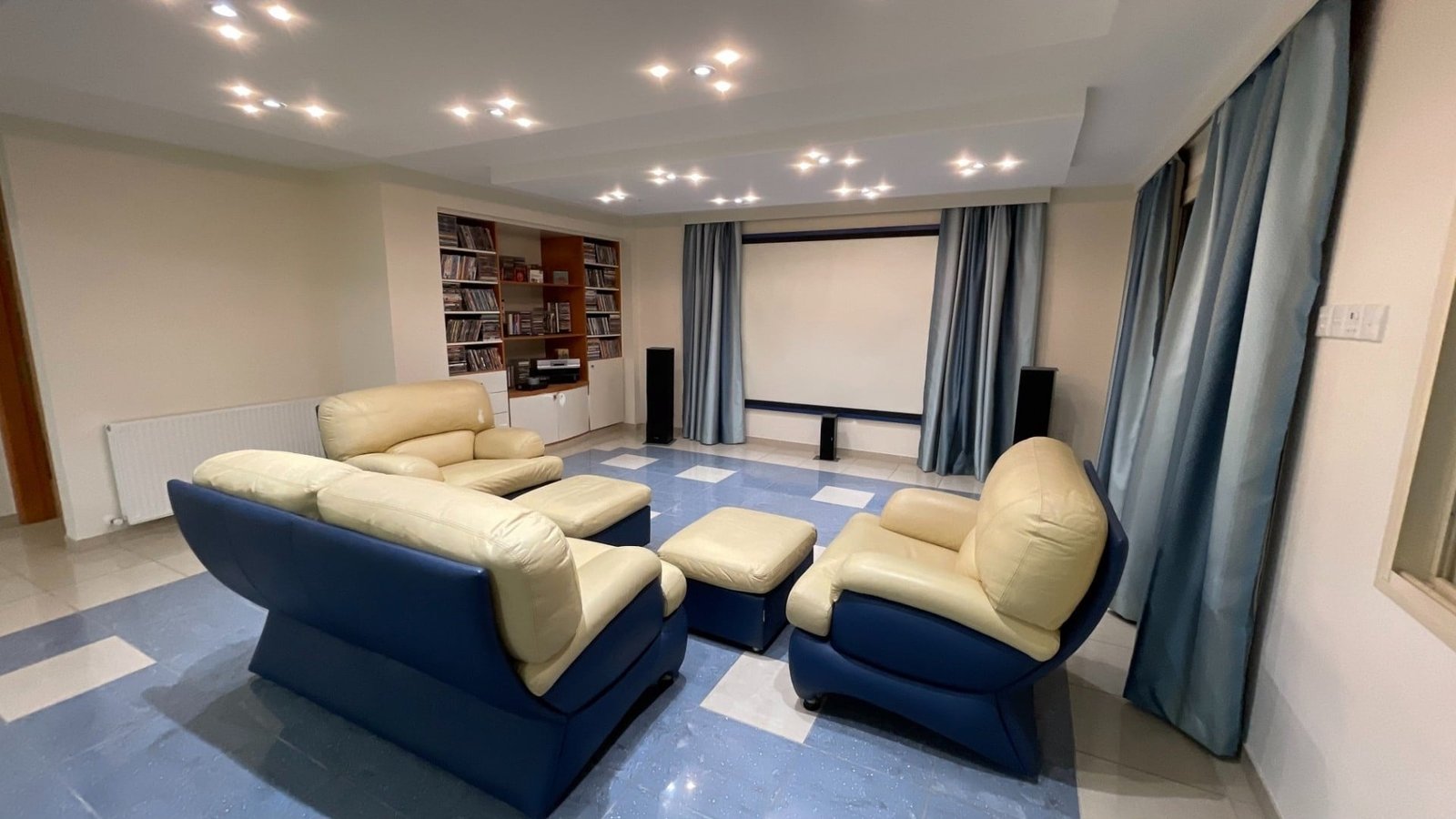 The front entrance includes traditional stained-glass handmade windows. Home cinema with a big screen and sound system. Satellite TV, smart home music system. High-speed structured cabling system ready for Computer, Internet, Telephone Audio, Video TV/Satellite.