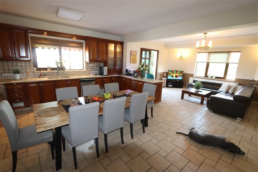 Separate Open Plan Kitchen Area with Italian solid wood kitchen and fitted appliances, separate lounge area and casual sitting room.