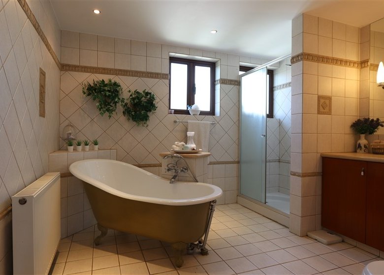 Cast Iron Guest Bathroom with Large separate shower cubicle