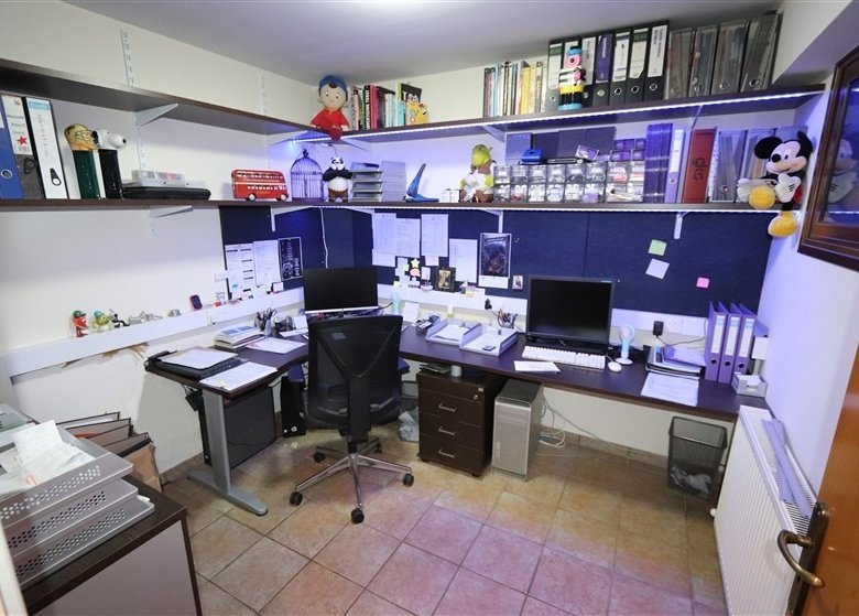 Office Space with fitted desks, shelves and structured cabling, RGB effect lighting