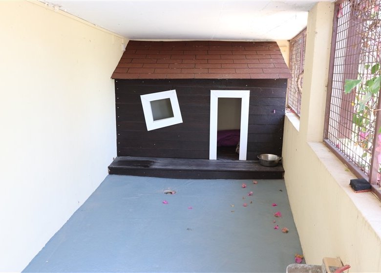 Covered, secure and out of the way luxury Dog Kennel with floor drainage