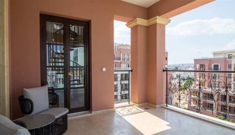 Club-style residences complex executed in classical colonial style of Cypriot/European architecture. The façade is elaborately decorated with columns, balustrades, window/door frames and decorative elements made of natural stone. Open balconies are closed in with handmade railings made of wrought iron. The side supports of balconies are made in classical style and are an intrinsic ornament of the whole building.
