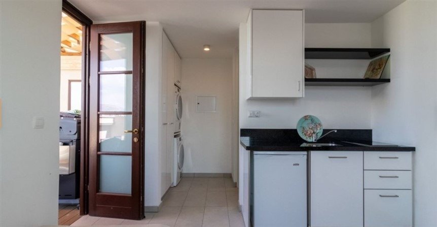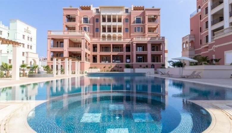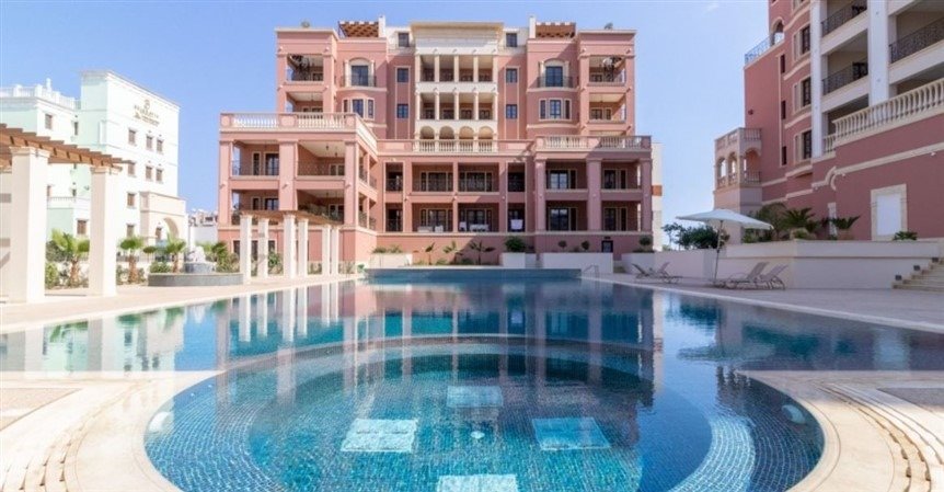 The penthouse has a private swimming pool on the roof and a fireplace with rich carved marble portals in the living room.