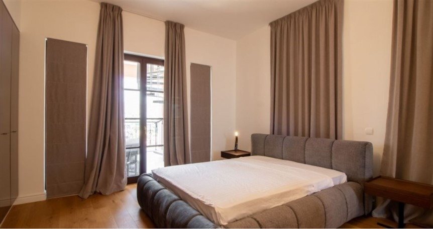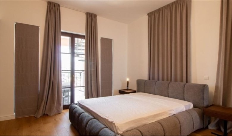 The building complex consists of of 3 blocks creating a symmetrical harmonious U-shaped structure. In the center of the complex there is a large swimming pool finished with mosaics. The large area of the plot accommodates, apart from the swimming pool, a spacious recreational area with landscaped garden. It also provides a fitness center and a fitness center.