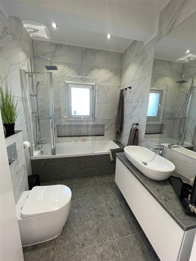 The villa is in loft style and fully renovated with all new fixtures and furnishings. This includes new quality brand INOX fridge – freezer, washing machine and dishwasher installed. Along with new modern lighting and furniture as well as granite and marble island dining table. The property has been renovated to a very high standard and attention to detail.