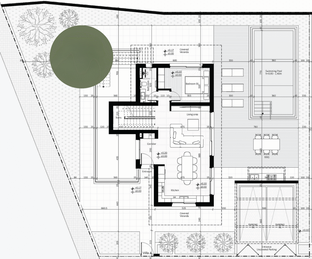 Residents can choose between three- or four- bedroom villas and one of three types of layouts. Each house has its own garden with everything needed to create a relaxed family home.