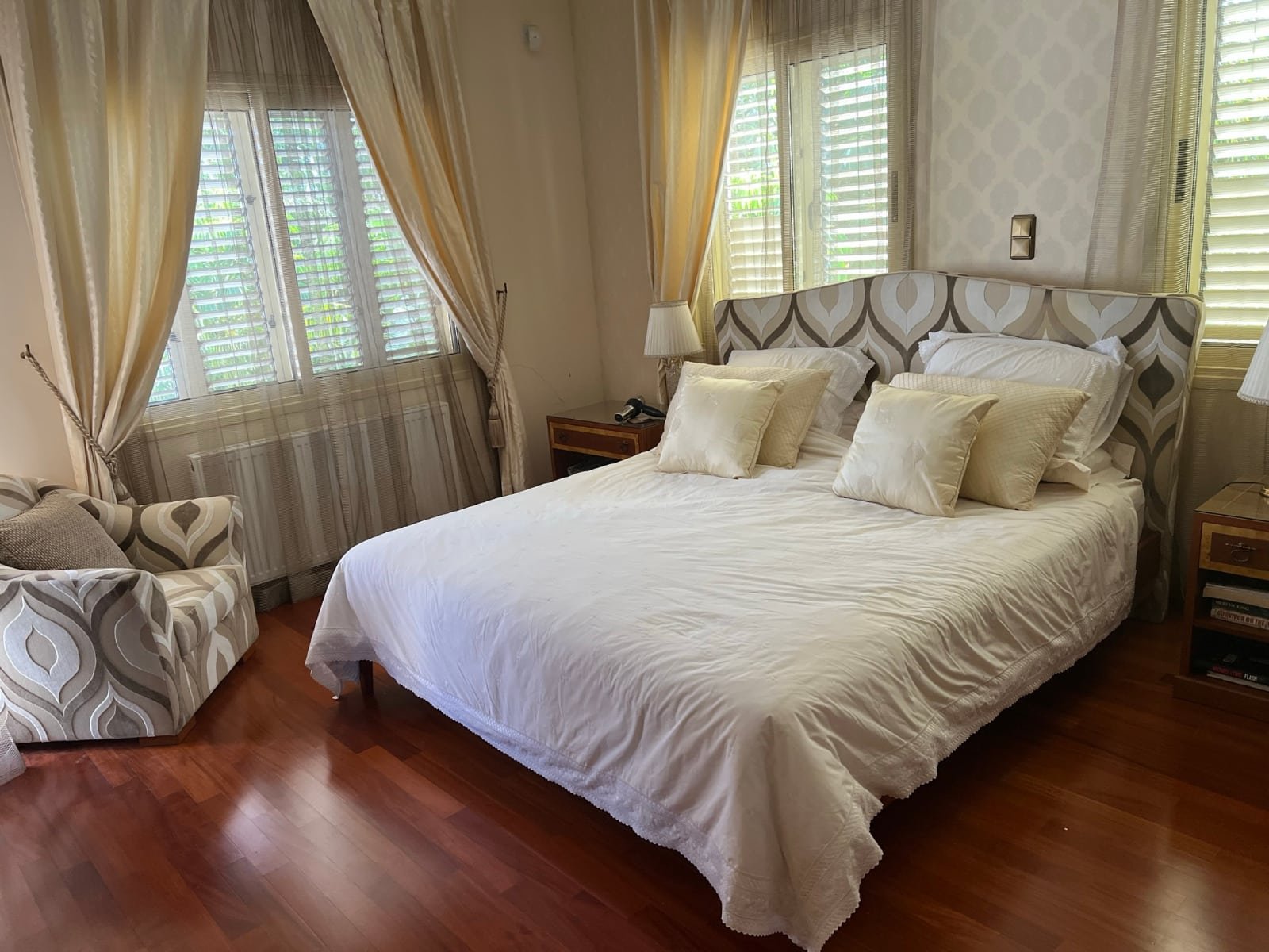 This 5-bedroom villa, offering a breathtaking panoramic sea view, is situated in the prestigious Agios Tychonas area of Limassol. Set on a generous 1,000 m² plot, the villa features five spacious bedrooms and seven bathrooms. Outdoors, the property includes a private swimming pool, a beautifully landscaped garden, and a dedicated BBQ area.