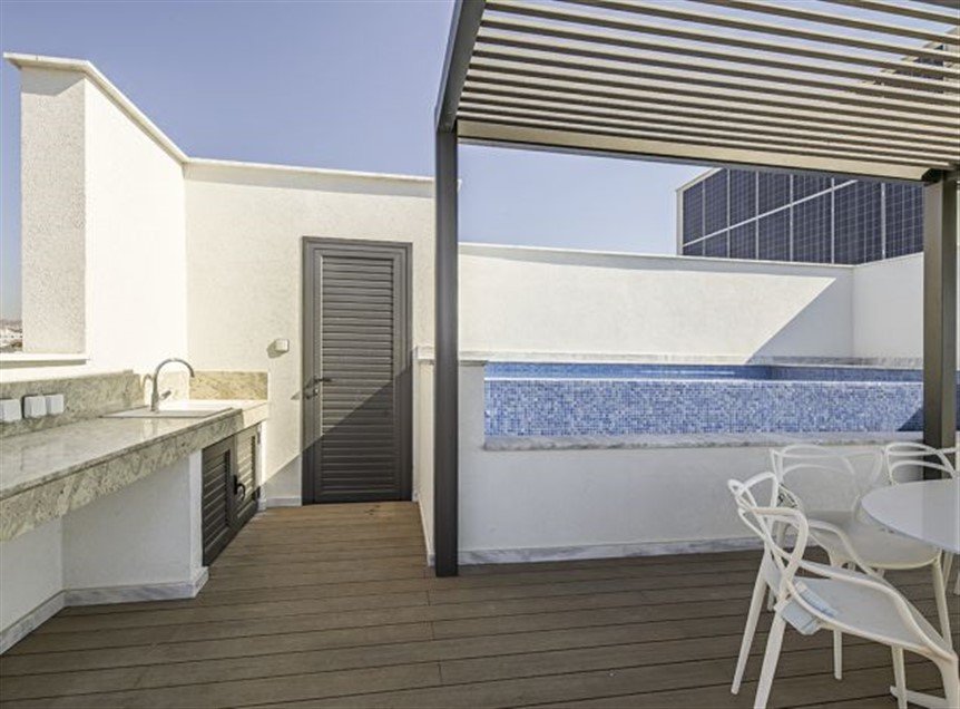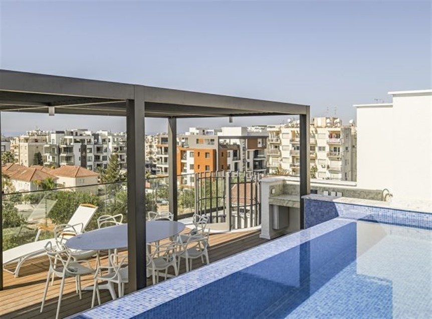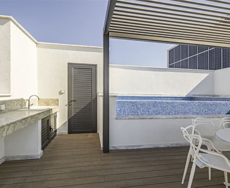 This is a beautiful modern 4 bedroom penthouse, fully furnished and equipped with all necessary electric appliances. The indoor facilities include a common swimming pool and covered parking. The penthouses with panoramic city views have own roof terraces with private pools.