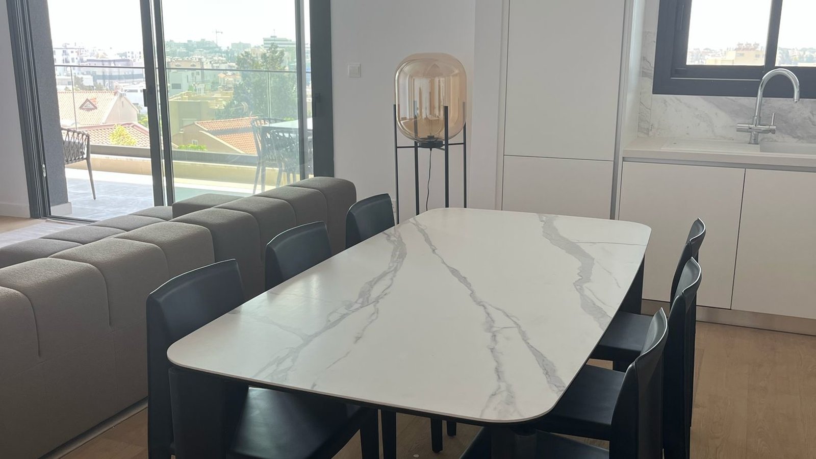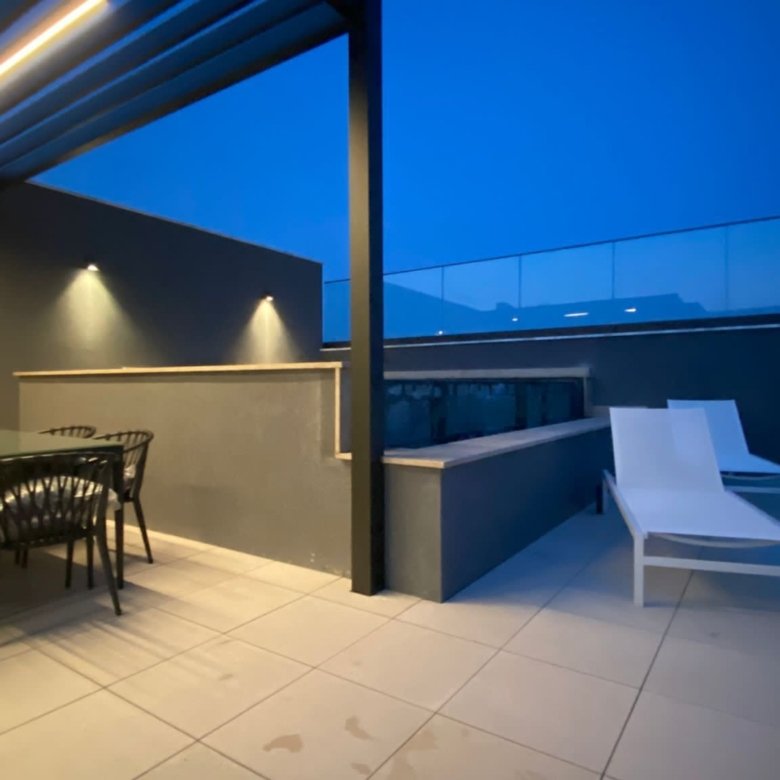 This luxurious 4-bedroom penthouse is located in a modern complex in the quiet residential neighborhood of Germasogeia, Limassol, close to all essential amenities. Spread over two levels, it features 3 bedrooms and 3 bathrooms on the first level and 1 bedroom on the second. The rooftop offers a private swimming pool and a BBQ area.