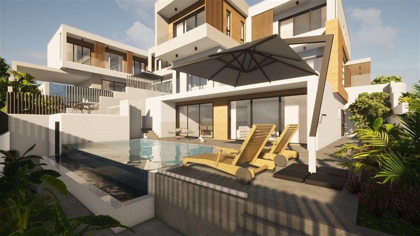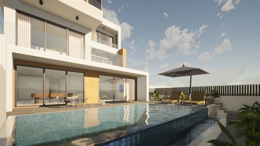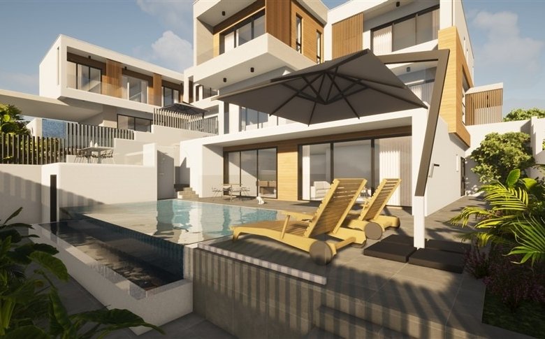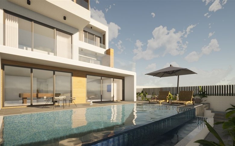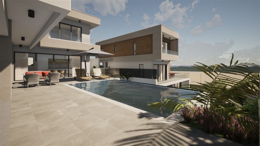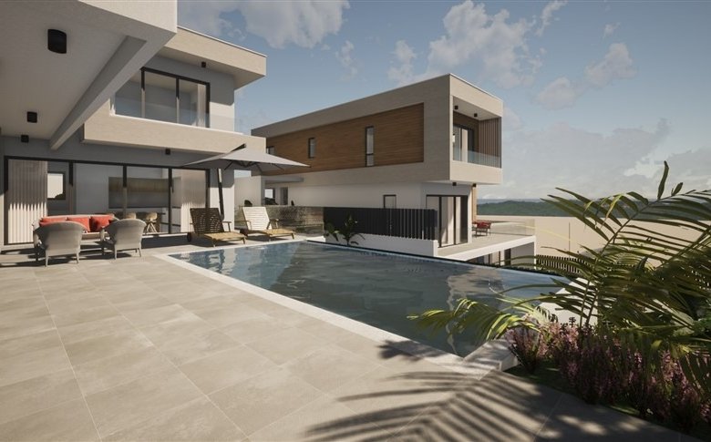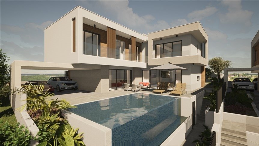 Limassol Property Four Bedroom Villa In Germasogeia Area. Luxury modern detached house under construction for sale 4 bedrooms in Paniotis Germasogia area Limassol, with full sea view four minutes from tourist area, with 4 w/c, 2 baths, shower, wardrobe swimming pool, storage room, covered parking’s for 2 cars ,photovoltaics, provisions for central heating , a/c, alarm system, cameras, electrical and telephone installation, provisions for electric parking doors, provisions for electric gates. House 320m2 plot size 485m2. Thermal yield A.