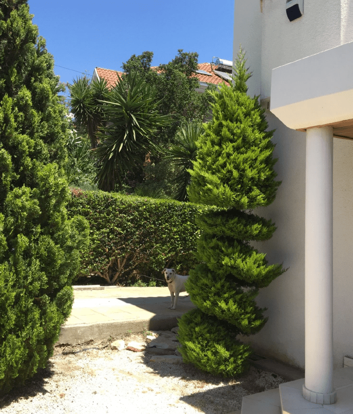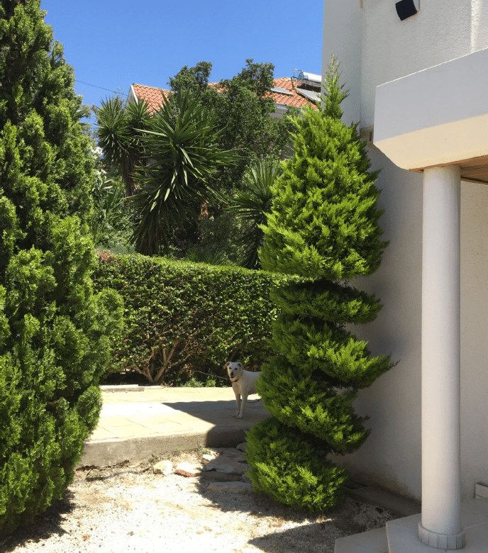 The house is located on a hill of Agios Tychonas with sea and city views of Limassol.It is situated in a quiet neighborhood with only another four houses on a dead end road. It is only five minutes drive from the sea and ten minutes drive from Limassol city.