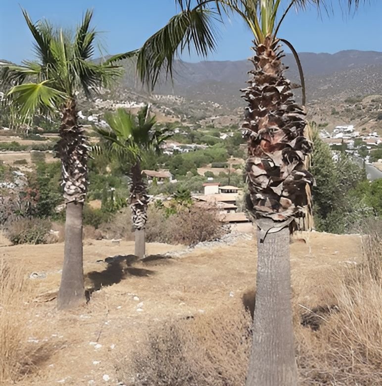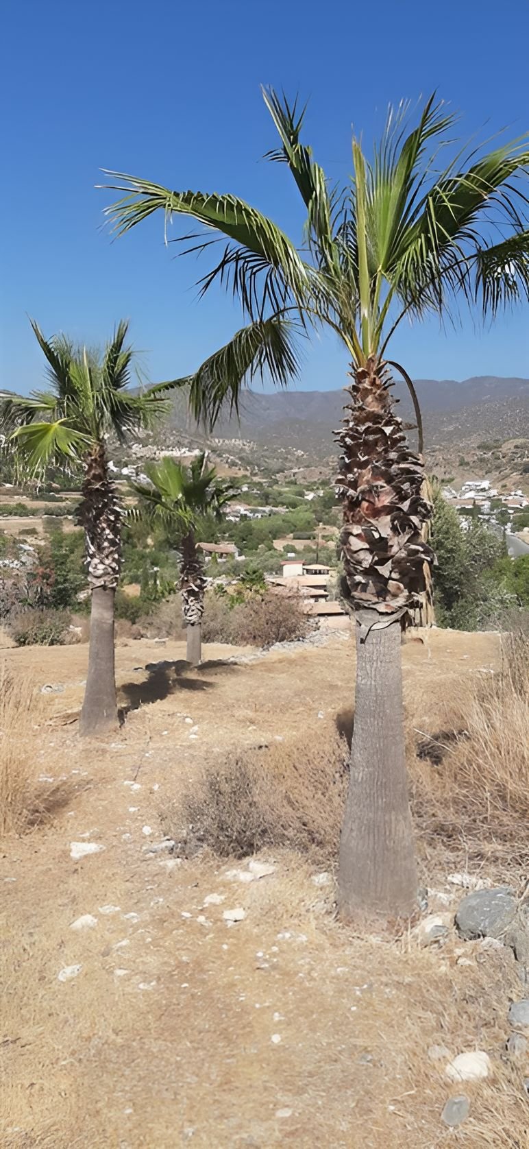The plot is set on three terraces and mature palm trees set the boundary.