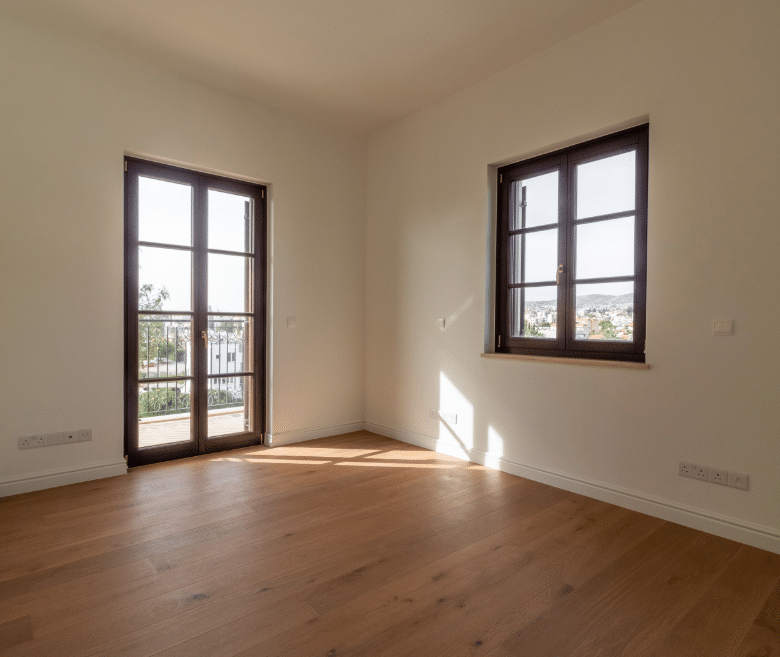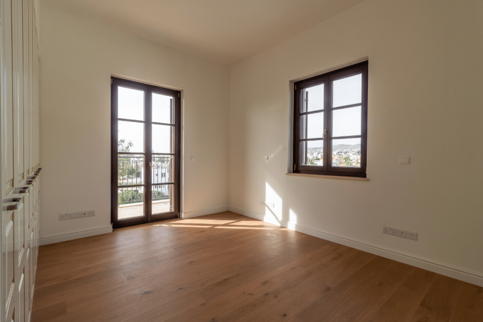 - External doors and windows made from hardwood frame are adjusted to the Cyprus climate and match the classical interiors and exteriors of the buildings