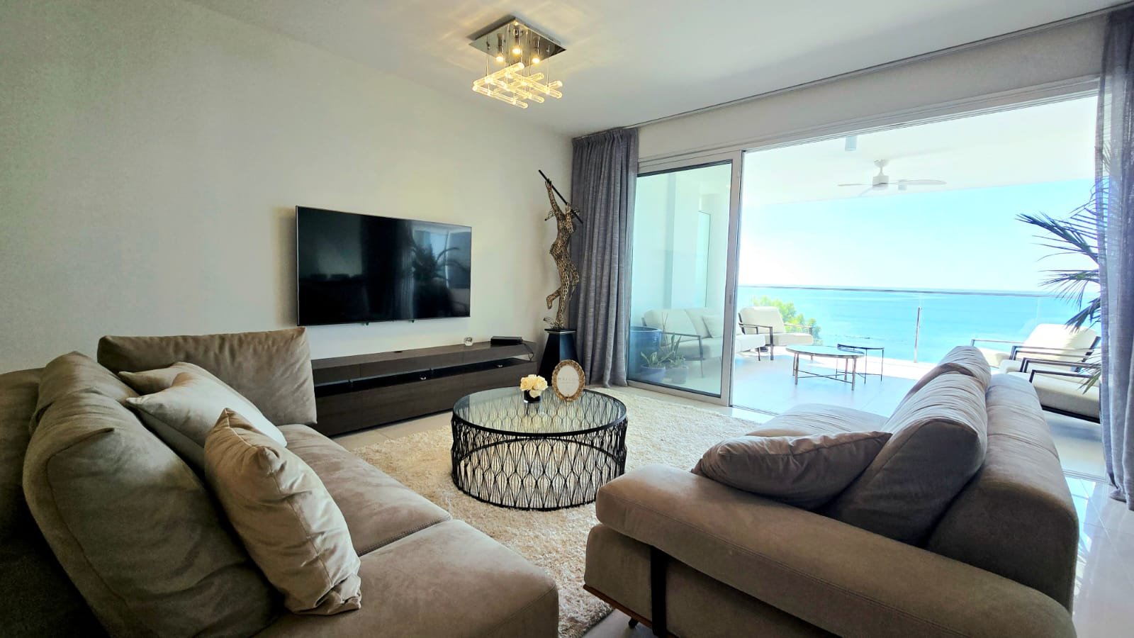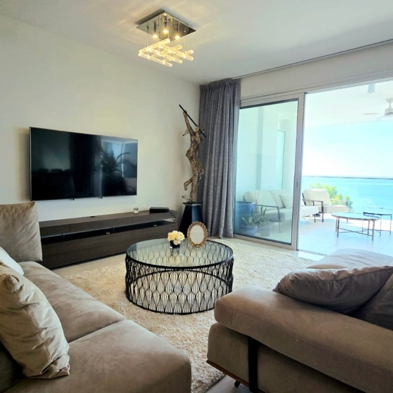 Two apartments occupy one full floor level, with sea views from three sides and mountain views on its Northside. The apartment is luxuriously furnished with air conditioning, central heating, en suite master bedroom, Italian kitchen fully equipped, common SPA and GYM, Closed Circuit Security TV with 10 cameras.