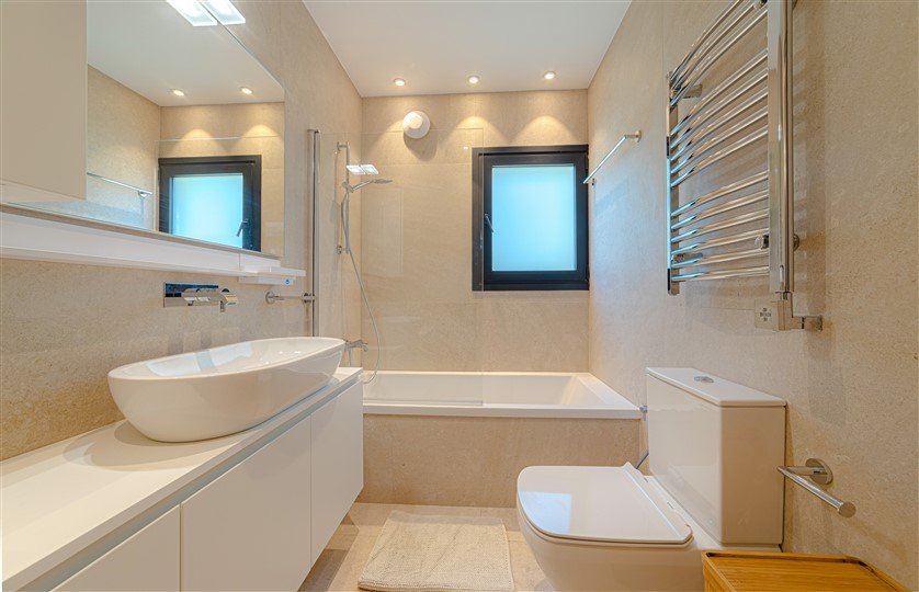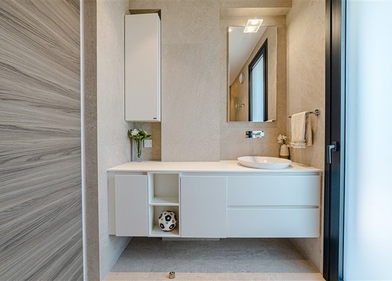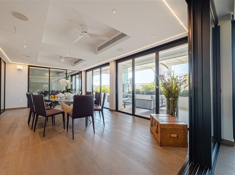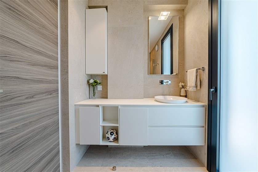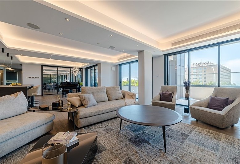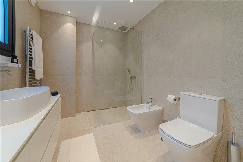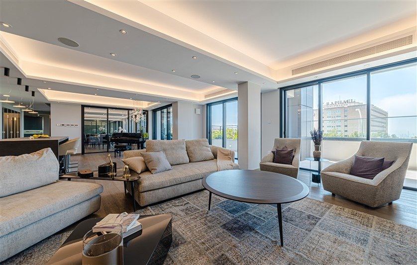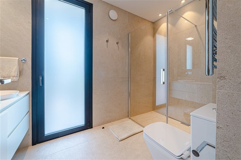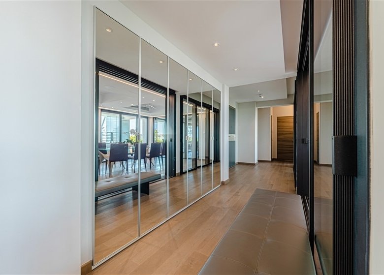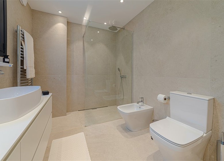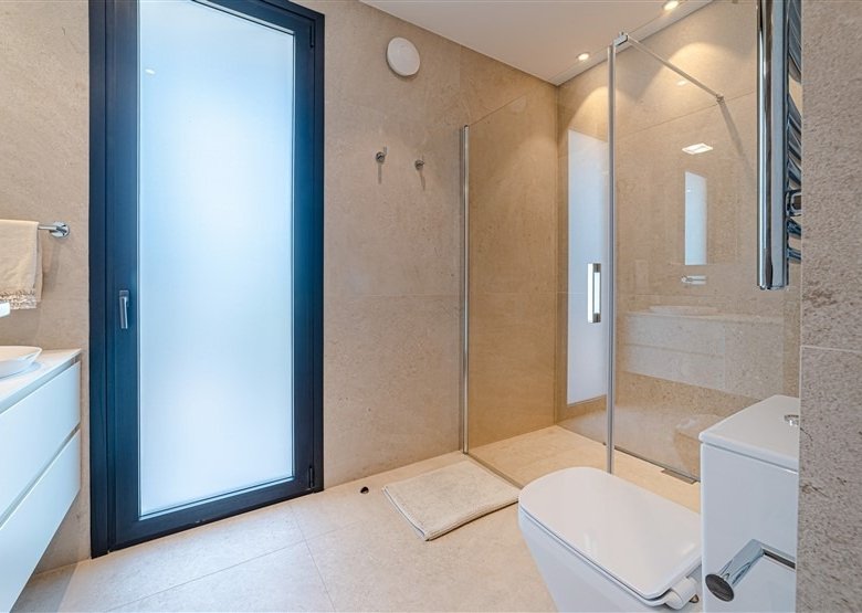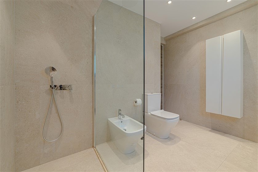 It comprises a spacious living room with a piano corner, an open plan kitchen, a large dining area, an office and library area, 3 bedrooms, the master bedroom having an en-suite shower, the third bathroom having an en-suite shower and a walk-in wardrobe, a family bathroom and a maid’s room with its private shower room.