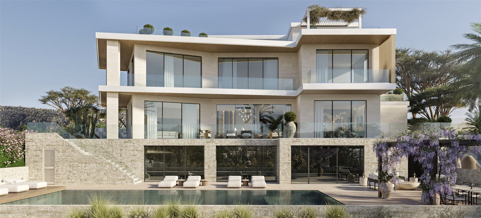 It is part of a project featuring five villas. This expansive three-level house showcase luxurious living at its finest, with spacious and elegant interiors. One of the villa’s most impressive features is its breathtaking panoramic sea views, visible from various areas throughout the property.
