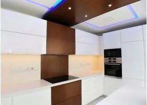 The apartment is fully automated with a centralized remote operation for lights, blinds, curtains, audio, video, heating, and air conditions. It also has a designed kitchen with Corian worktops, top-quality Italian ceramics, wooden parquet flooring in bedrooms, a large balcony directly on the beach, video entry, underfloor heating, a central audio system, mood lighting system, and gas-filled double-glazed windows.