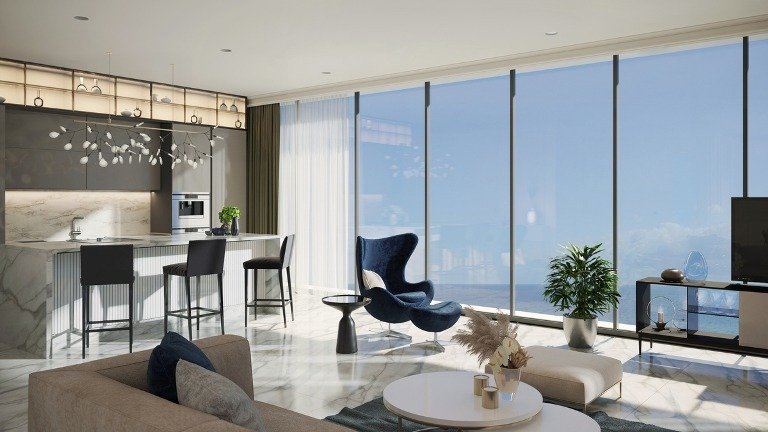 This luxury high-rise building comprises retail and office space on the ground and mezzanine floors, and 12 floors of residences, including a penthouse, all overlooking the azure blue waters of the Mediterranean. Its location across from the famed Blue Flag sandy beach of Dasoudi means that the golden coastline is never more than a few steps away. The property is ideally situated in a bustling hot spot that is perfect for both shops and offices looking to be in the middle of the action, as well as for residents who wish to fully indulge in all the perks of island living, with a host of amenities at their fingertips.