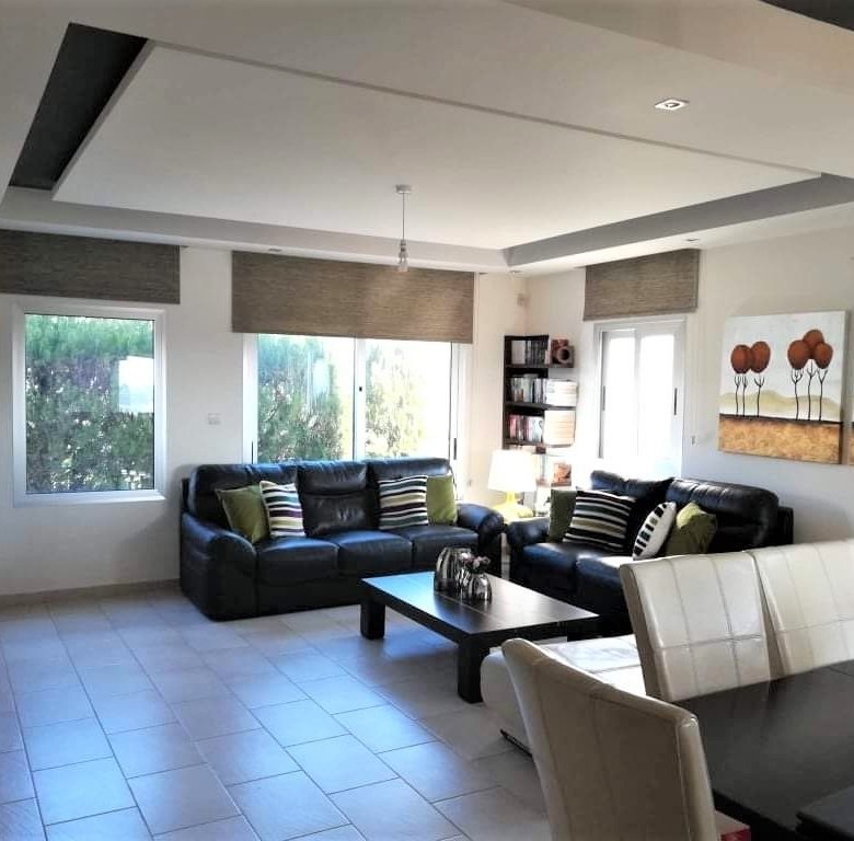 The upper floor consists of 4 large bedrooms. The master bedroom has an en-suite bathroom and is exiting to large balconies. The other 3 bedrooms share a family bathroom with a bathtub. All bedrooms have large balconies with beautiful sea and mountain views.