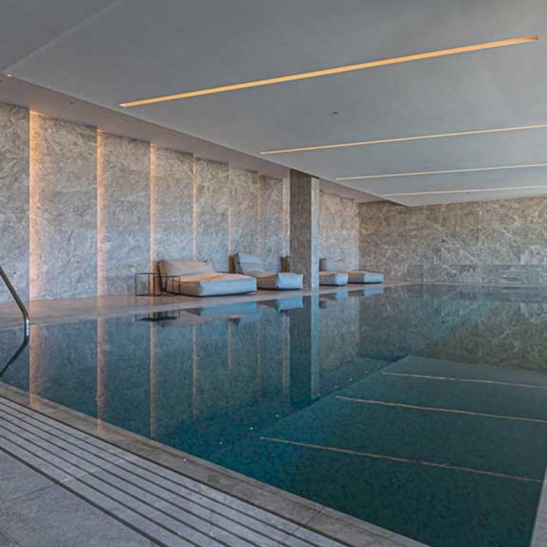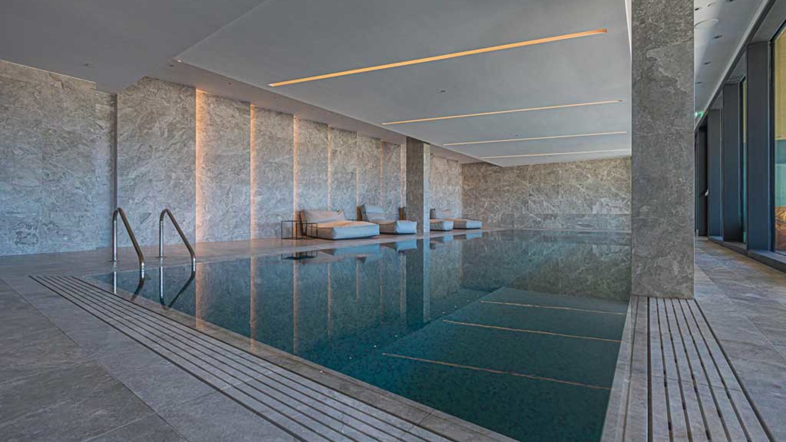 The gated community is just 300 meters from the sandy beach and provides outstanding amenities such as a heated indoor pool, outdoor swimming pool, spa, fully equipped gym, tennis court, and concierge services.