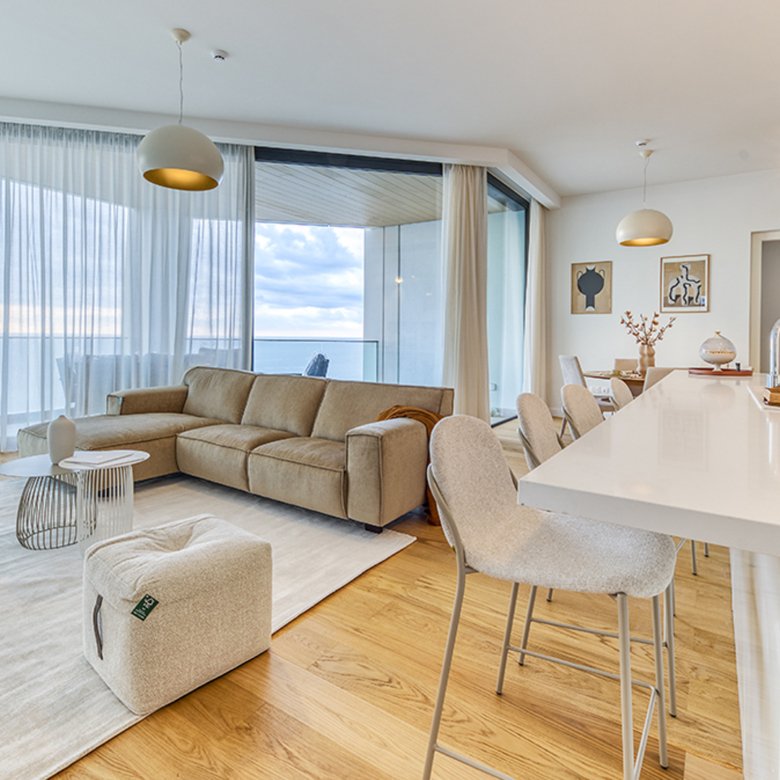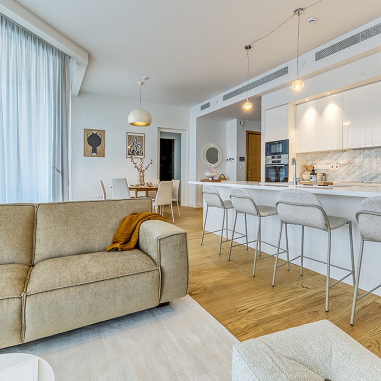 Situated on the 17th floor of a luxury 23-storey residential high-rise, it offers an exceptional blend of elegant living, hotel-like facilities, and modern architectural design. The apartment features high ceilings (3.15 m), top-standard finishes, 2.4 m interior doors, security entrance systems, aluminum window frames with thermal breaks, and high-quality built-in furniture.