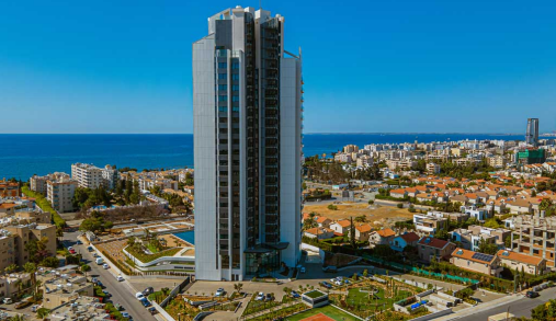 Unique residential high-rise complex of 23 floors with hotel facilities developed with the world’s latest architecture & planning trends in mind. Residents will enjoy unbelievable see panoramas and the exceptional atmosphere of comfort and relaxation in the elegant gated community with exceptional in-door amenities, such as concierge, SPA, common outdoor pool, heated indoor pool, gym, tennis court, green area, and underground parking. The complex blends ideally in the urban landscape of Limassol’ sought after tourist area thanks to the well-balanced mix of sophistication, comfort and landmark design by a leading London architecture studio. Limassol’s best sandy beaches, shops, restaurants and other holiday pleasures are in a stone’s throw. The development comprises one-, two-, three-, and four-bedroom luxurious apartments, penthouses and duplexes (sky houses) with private pools on the roof. Each unit has 3.15 meters height ceilings and top quality finishings to astound the most demanding buyer. Most of the apartments offer breathtaking views of the Mediterranean Sea, Limassol city and its picturesque hilly suburbs.
