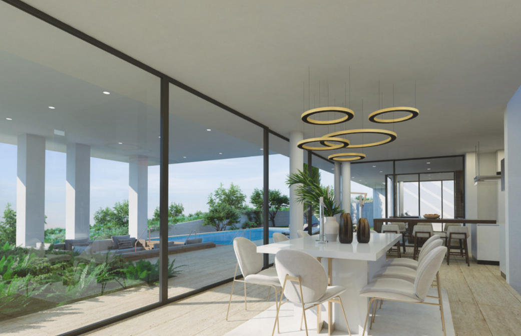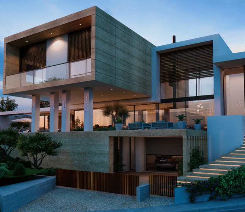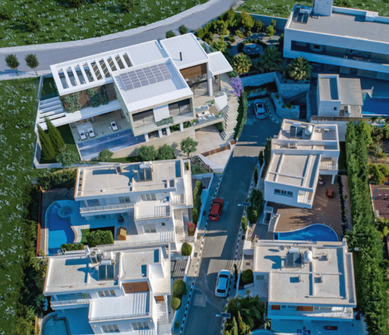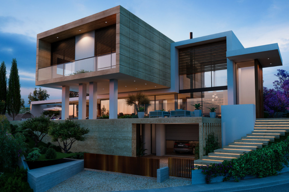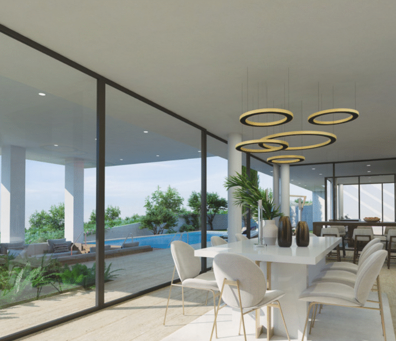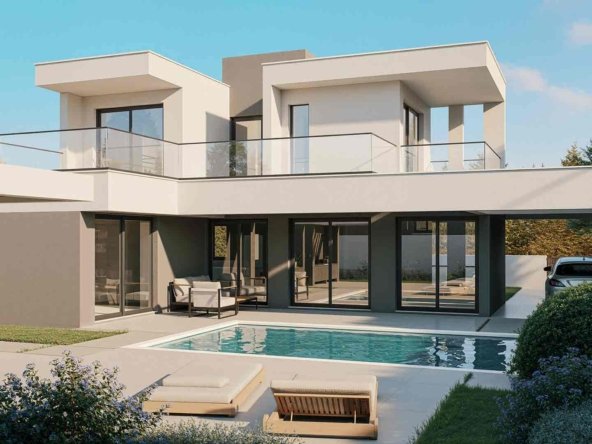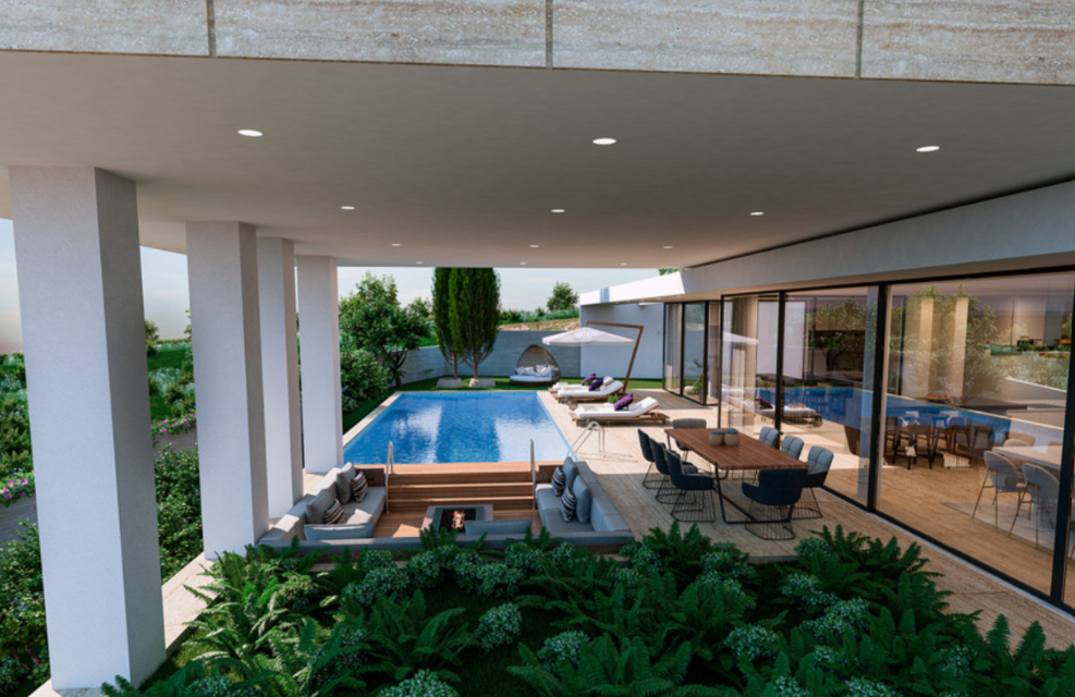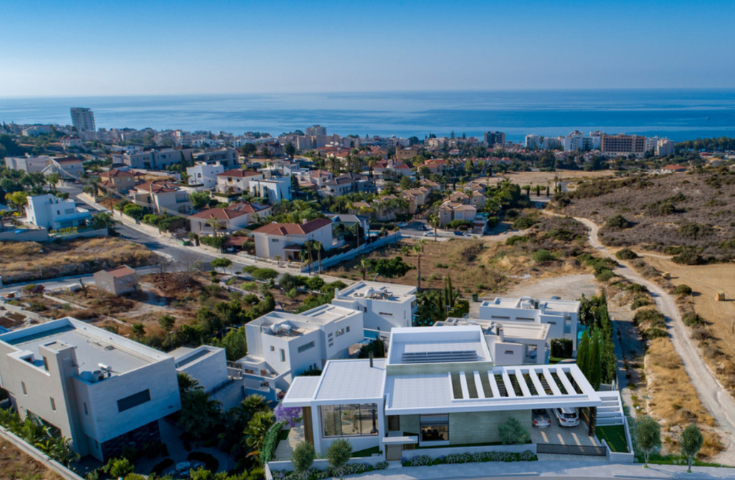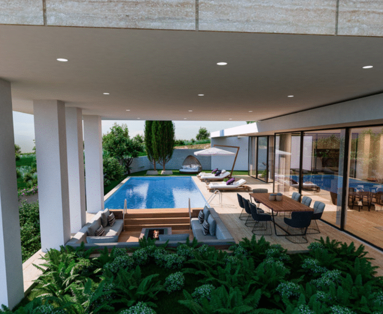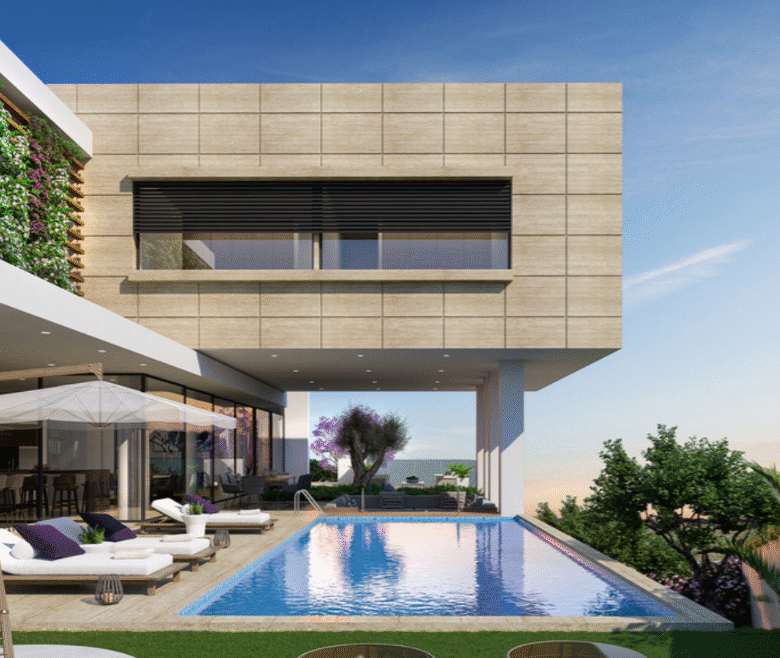 This modern 4-bedroom villa in Agios Tychonas, Limassol, offers uninterrupted sea views. It features spacious open-plan living areas, high ceilings, and premium amenities including a high-tech kitchen, gym with shower, Jacuzzi, spa, maid’s room, and lift to all levels. The property also offers large garages, beautiful balconies, a sunken seating area, and landscaped poolside areas.