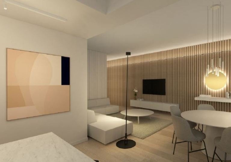The building’s reception area resembles a hotel lobby, giving the feeling of a heightened residential experience, which allows residents  to relax as soon as they enter the building.