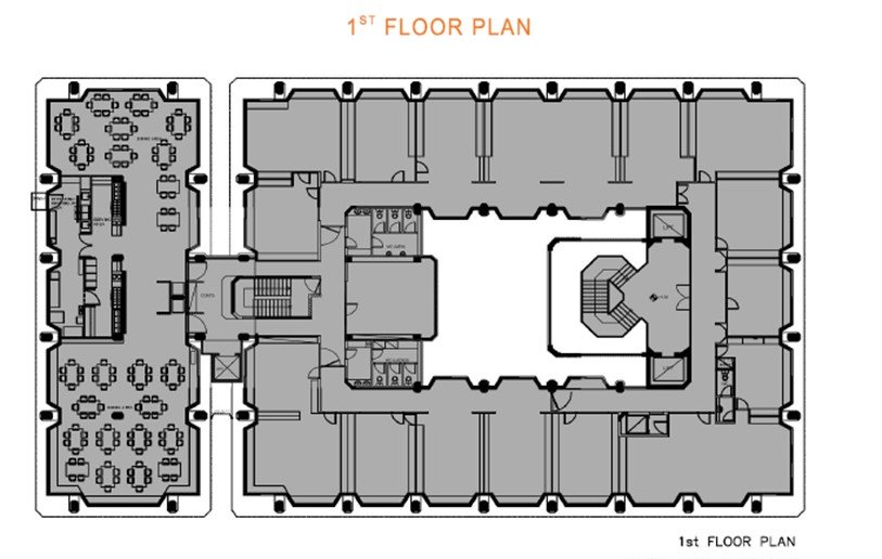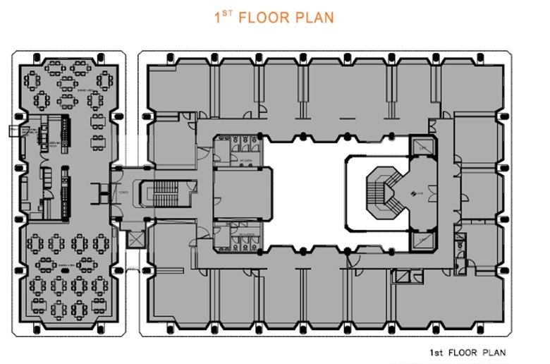 The work space is arranged around a central atrium and courtyard providing ample natural light throughout the day, an efficient layout and access to common facilities.