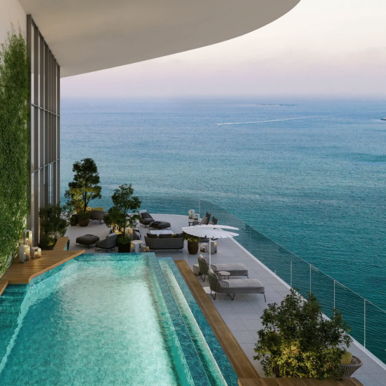 The project features a luxury spa, beautifully landscaped gardens, a children’s playground, underground parking, an impressive 50-meter infinity pool, as well as dedicated kids’ pools. Additional amenities include a sea-facing gym, a resident’s lobby, a bistro, and 24-hour concierge services. The apartment itself is stylishly designed and finished with materials and interiors created by renowned designers.