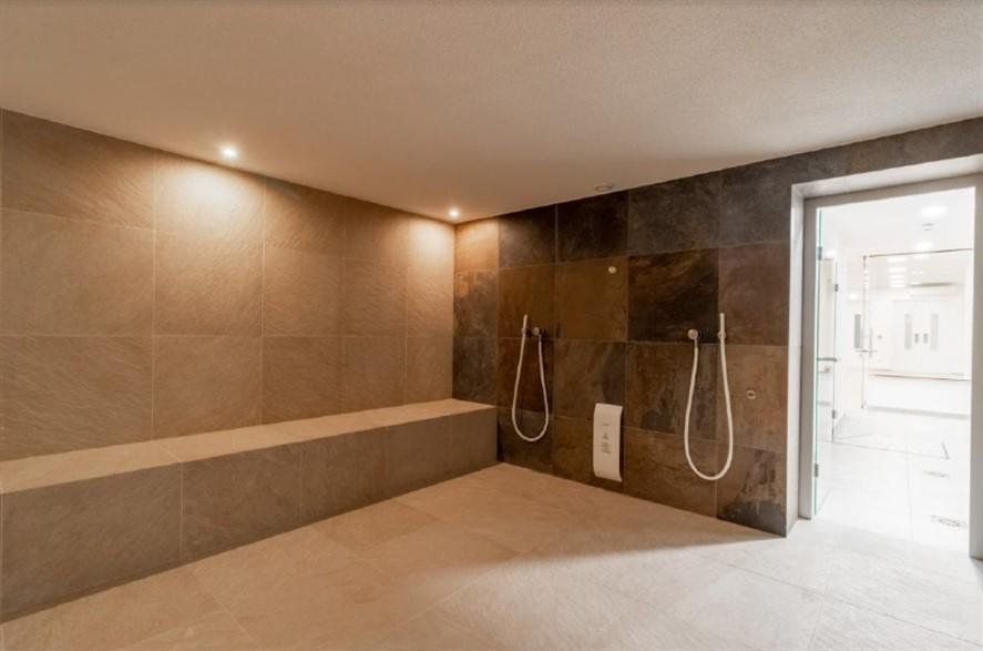 * Bathroom floors and walls are laid with expensive sorts of marble and granites