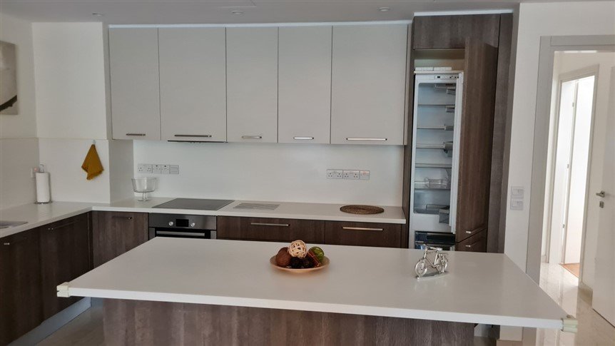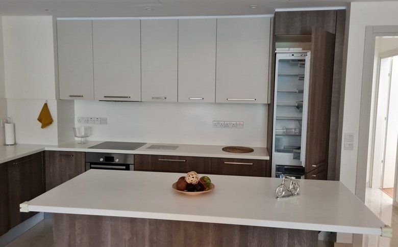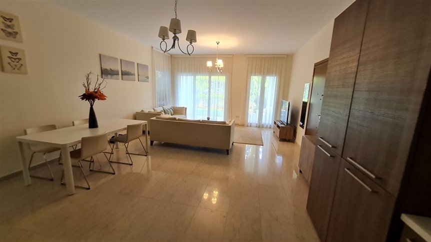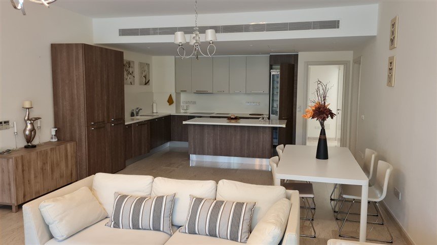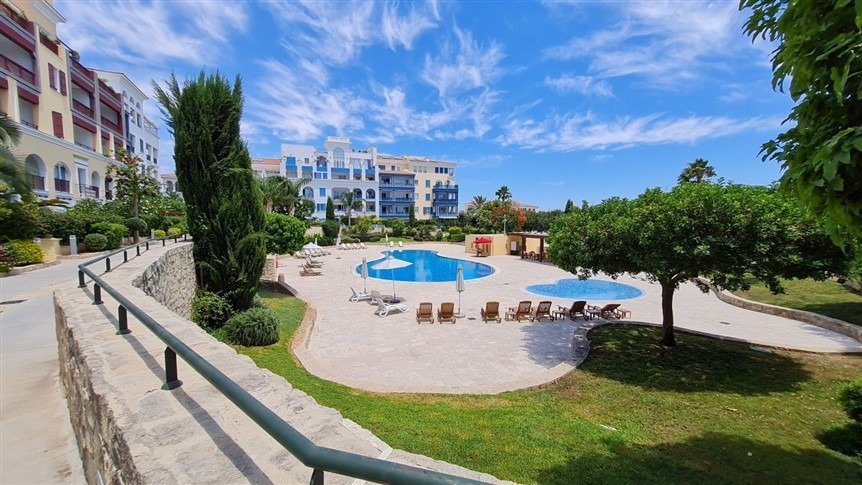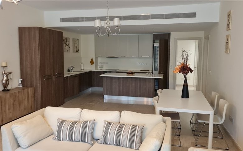 The apartment is a ground floor with garden featuring spacious living area with open-plan kitchen, balconies overlooking beautiful Limassol Marina with wonderful sea views, three bedrooms, a master en-suite bedroom and a main full bathroom.