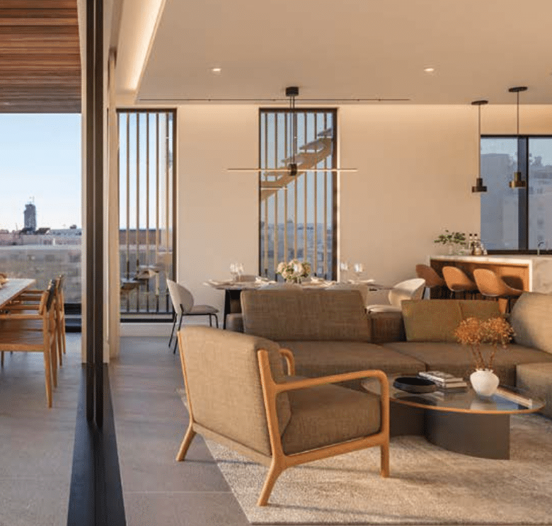 Created with careful consideration for modern and functional living, the residence presents six three-bedroom apartments, of which two penthouses with roof gardens, perfect for those embracing a sun-seeking urban lifestyle. Combining concrete and high-pressure laminate (HPL) panels, the exterior design captures a timeless appeal, designed to elevate your living experience in the heart of Limassol’s most sophisticated residential area.