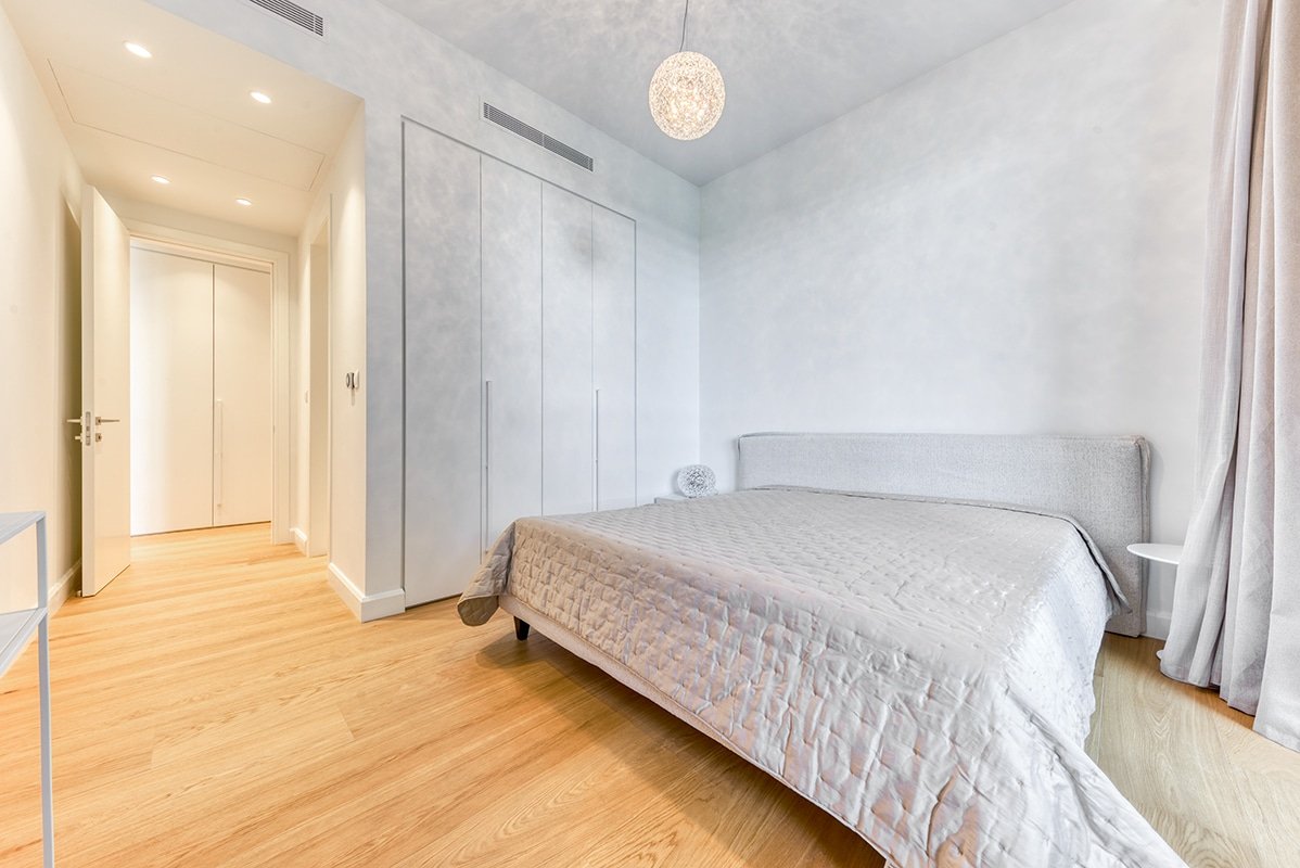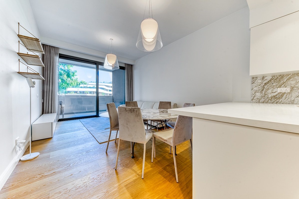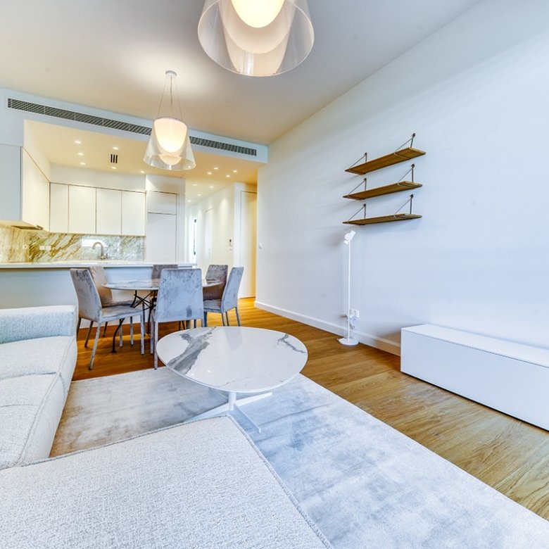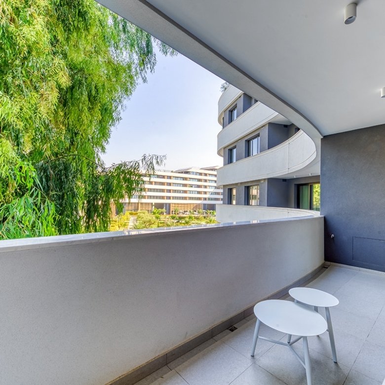 Arranged around a central landscaped garden, the architectural design draws inspiration from both natural and man-made elements. Resembling a superyacht, each block gracefully slopes down from its highest point, adorned with balconies on all sides. Continuous balustrades, forming wide horizontal bands, wrap around the blocks at each level, accentuating the development’s expansive and horizontally oriented layout, spanning over 300 linear meters.