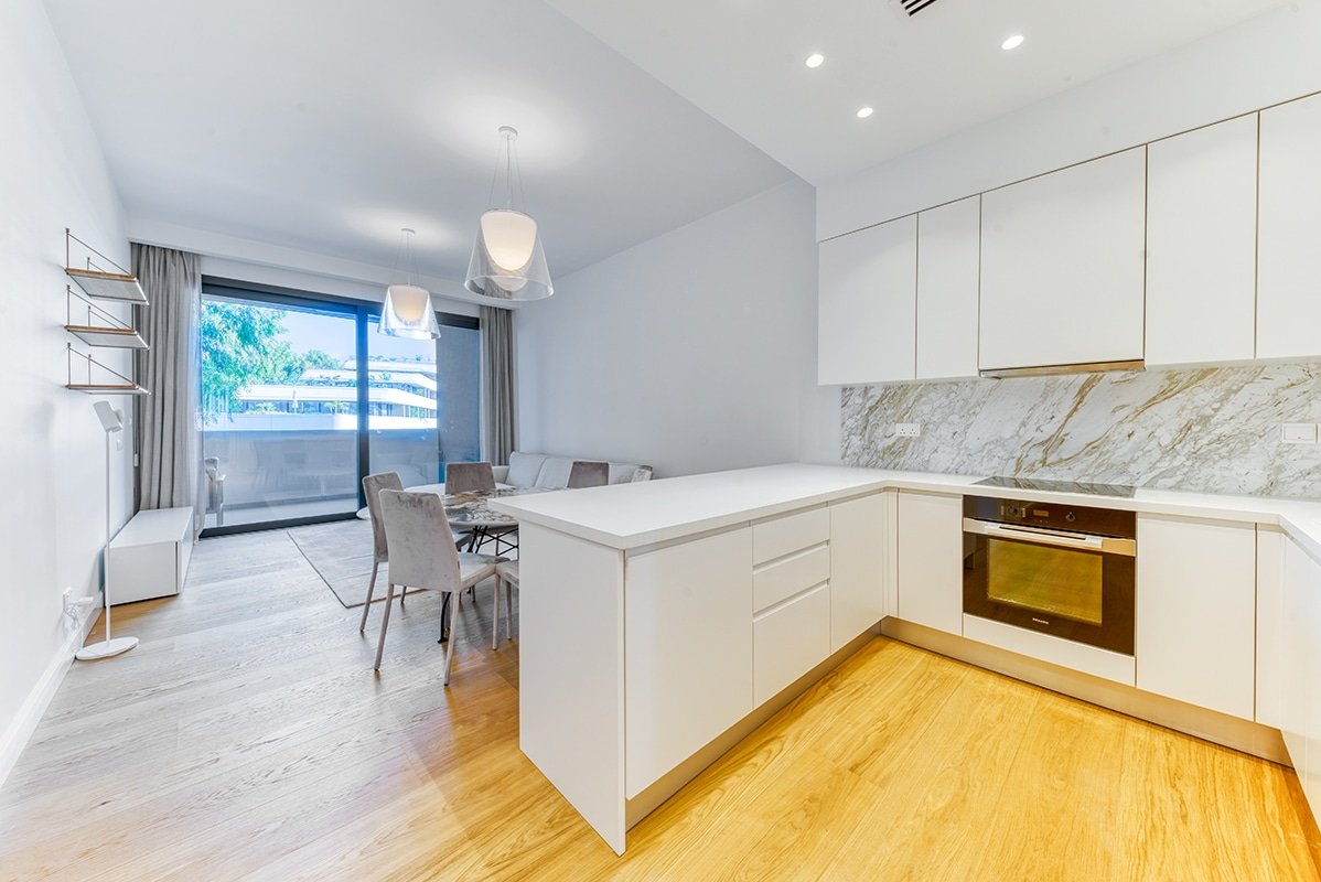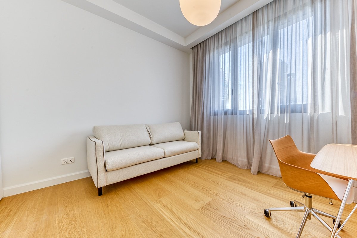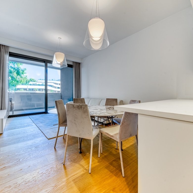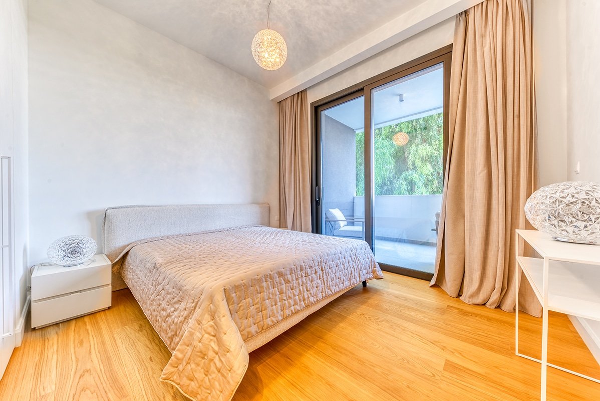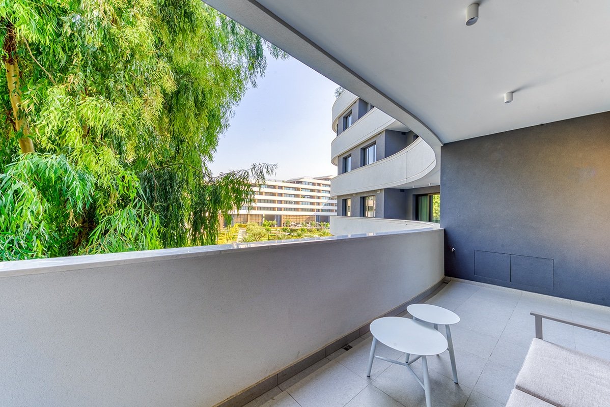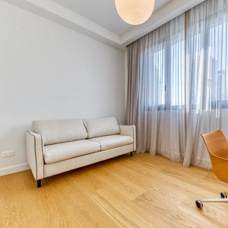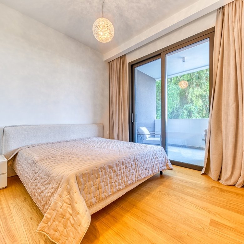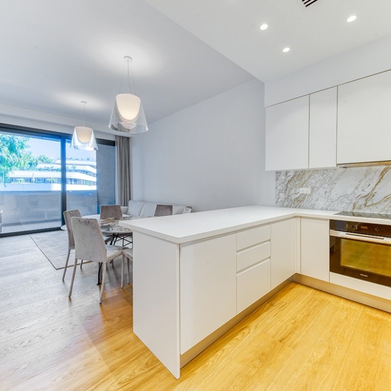 This upscale 3-bedroom apartment is situated in a secure residential complex in Potamos Germasogeia, Limassol, within a quiet and exclusive neighborhood of the tourist area, approximately 500 meters from the seafront. The building stands tall at 8 stories.